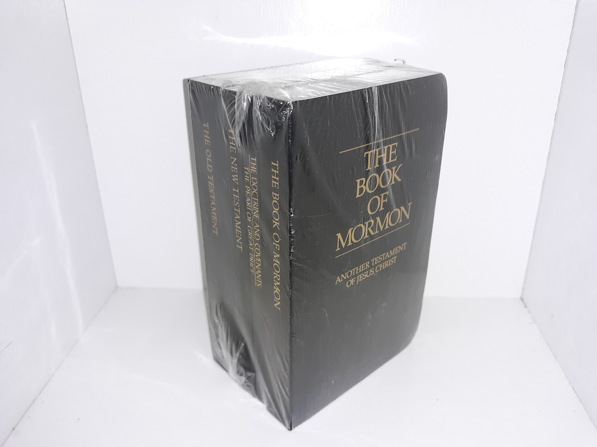 4 brand new, very small, black softcovers kept within their original, unopened plastic wrap. The books appear to be in pristine condition beneath their wrap.