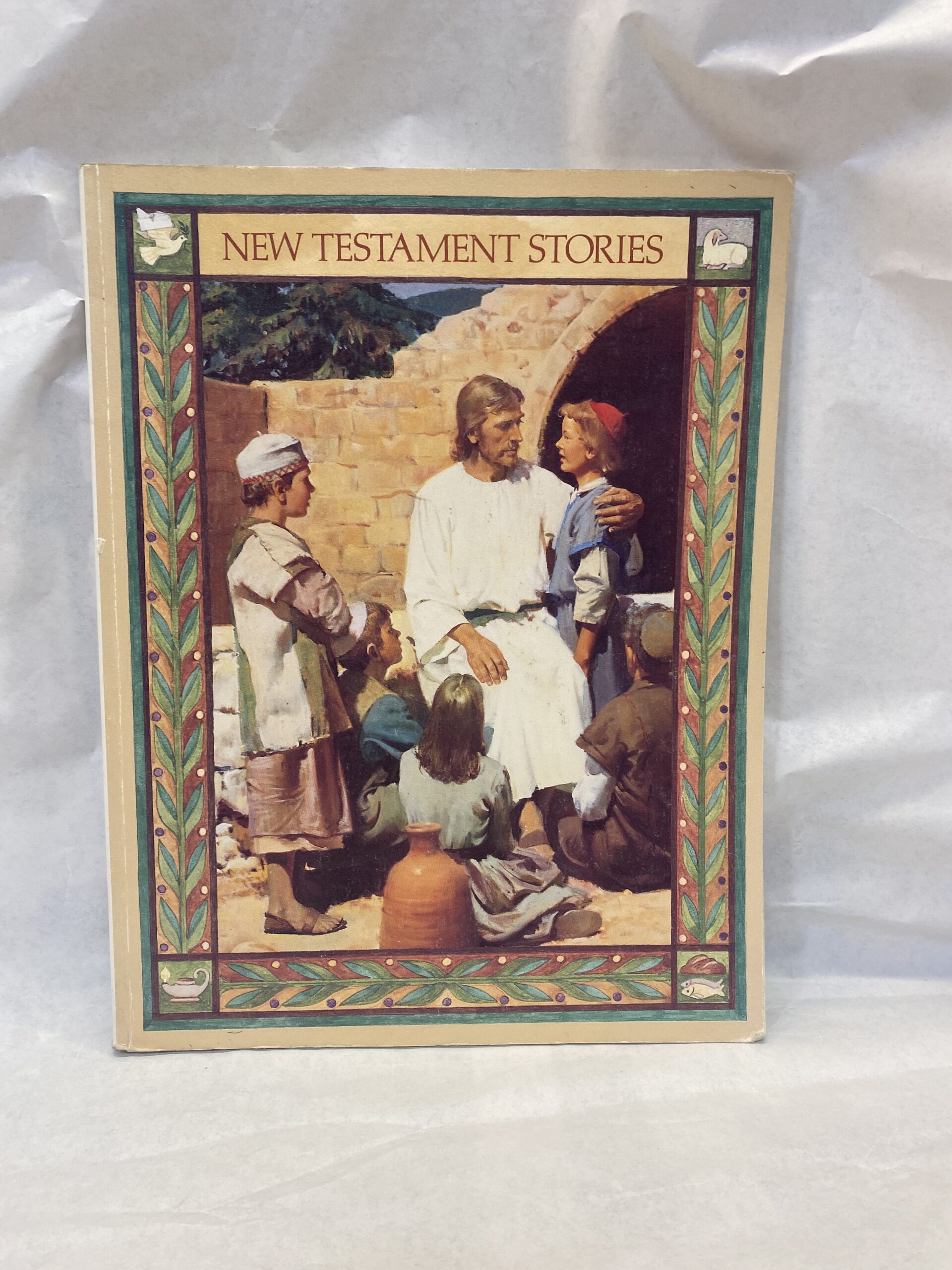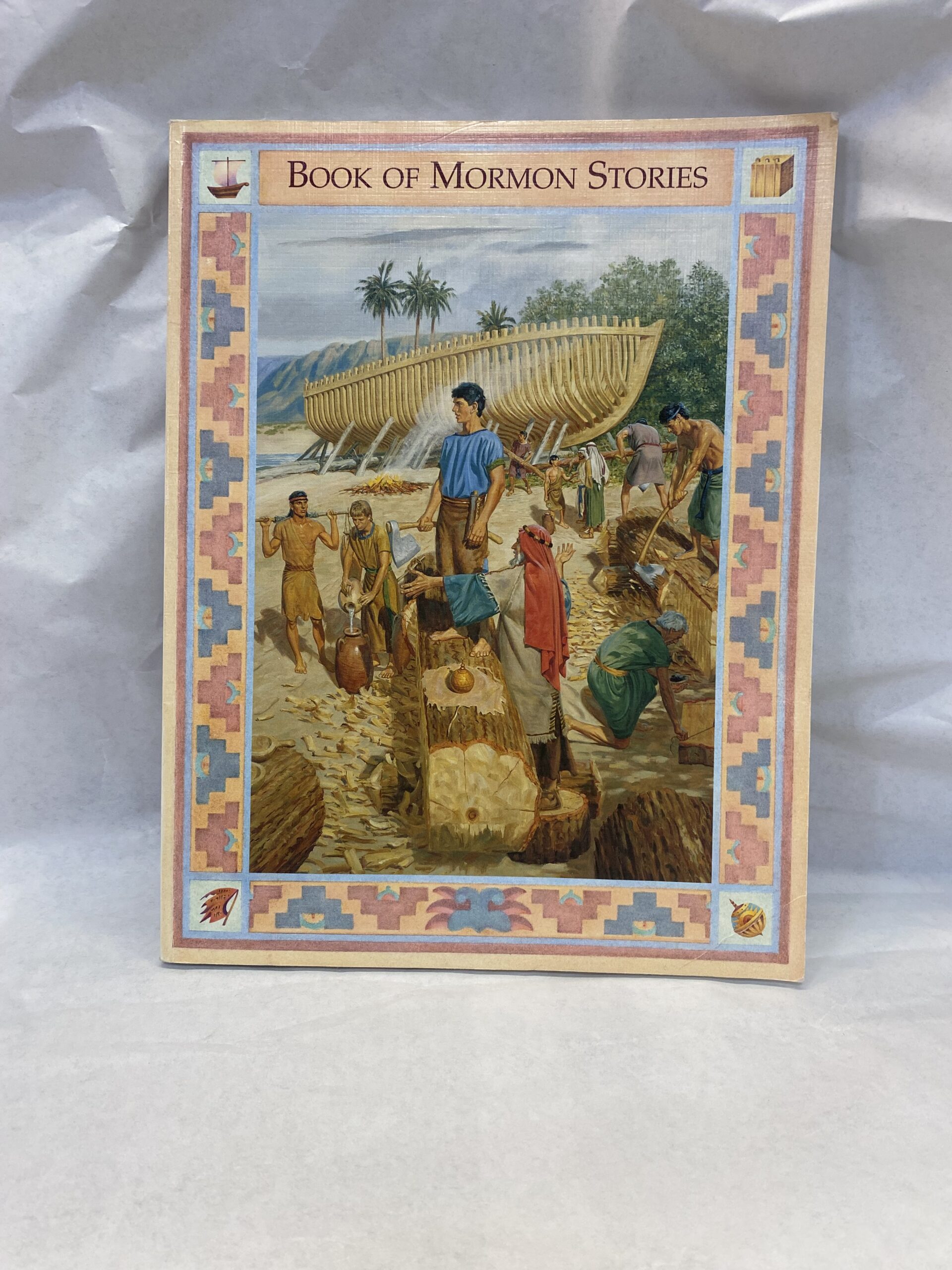 Good condition. All covers have scratches, scuffs, and smudges, with the New Testament Stories having residue on the back, and the Book of Mormon Stories having paint on the front. All cover pages have smudges, scratches, and some creasing. The New Testament Stories have some creased pages and writing on the front cover page. The rest of the pages of all books are clean and unmarked. The edges of the pages have scratches, smudges, and some scuffs. The binding of the New Testament Stories is a little loose.