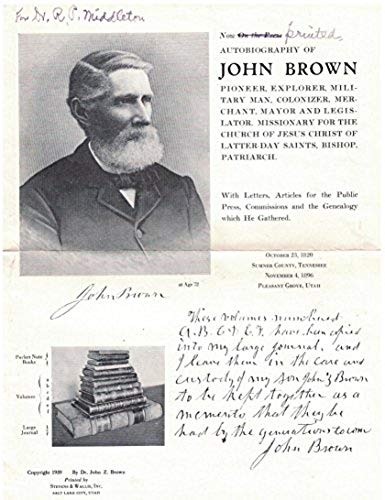 Autobiography of Pioneer John Brown 1820-1896 – by John Brown – 1941 1st Edition