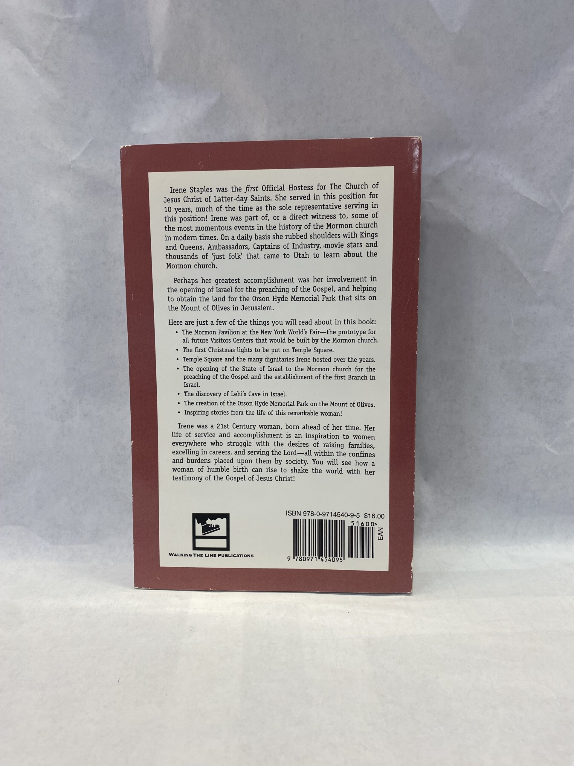 Hostess to the World, The Life of Irene E. Staples by Kevan Kingsley Clawson. Paperback, 2008.