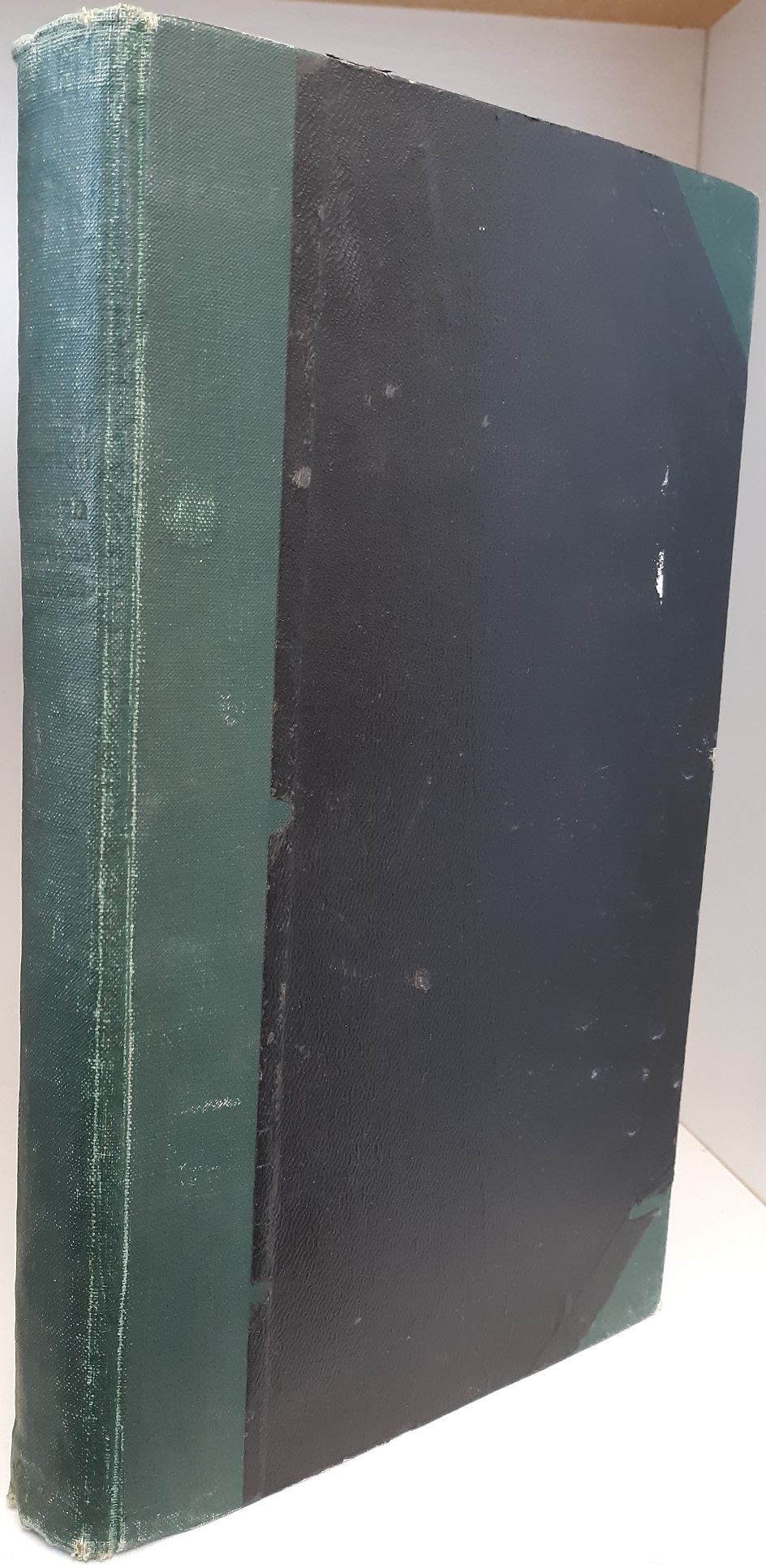 Fair condition hardcover with no dust jacket, and with a green spine. The cover has scuff marks, scratches, fraying, some minor stains, and some tears. The binding is loose. There are minor stains on several pages that do not interfere with the text. The flyleaf has a couple inscriptions written in black and blue ink, and there are some pencil marks. Text throughout is clean, clear, and legible………………………………………….v707 Cave 130