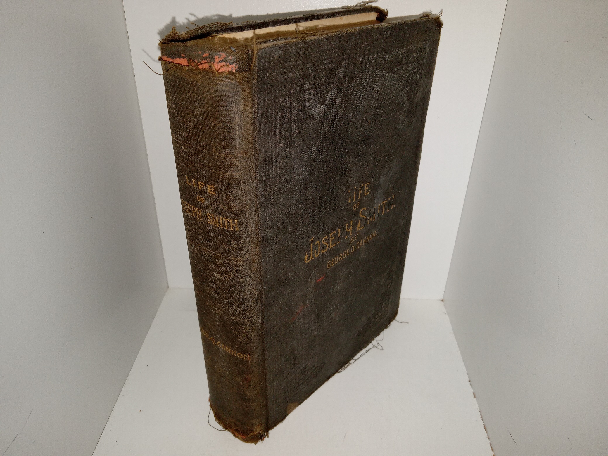 Fair condition, black hardcover with no dust jacket. The front board and spine are detached from the binding, but are still attached to the back board, which back board is still attached to the binding. The cover has tears, bubbling, pieces torn off, fraying, stains, scuffing, fading, and peeling. The internal binding is torn and loose. Some pages have stains, tears, and creases. The front flyleaf has writing in pen and pencil, and eraser marks.