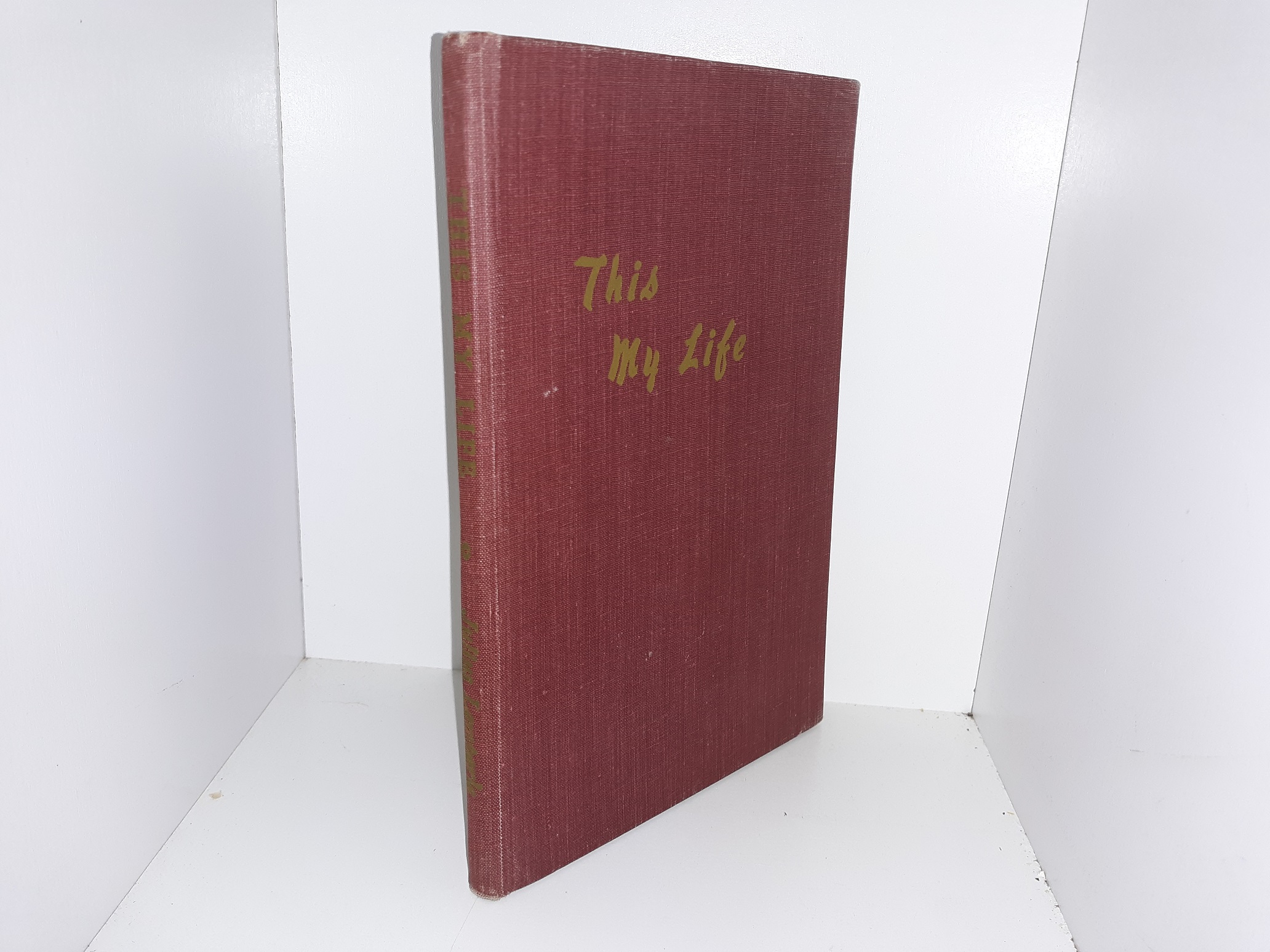 Fair condition, thin, maroon hardcover with no dust jacket. The cover has scuffing at the corners and edges. The internal binding is torn and slightly loose. The inside covers have wrinkling and some small stains. The title page has sheets of paper with notes pasted to them, and some writing in pencil. Text and illustrations throughout are clean, clear, and legible.