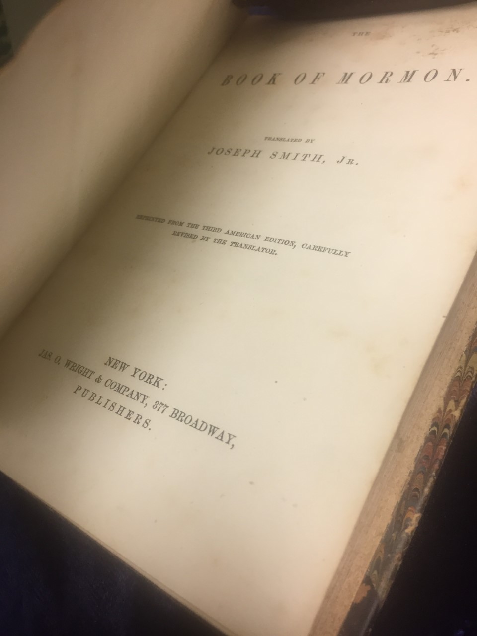 mormon books of mormon mormons mormonism lds jas. wright edition rare scarce leather binding leathers leatherbound leatherboundsĀ