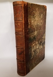 3/4 Leather binding, with faded marbled boards. Burgundy Leather with raised bands on the spine. Quite worn on the binding, but not bad. Text is clean throughout.