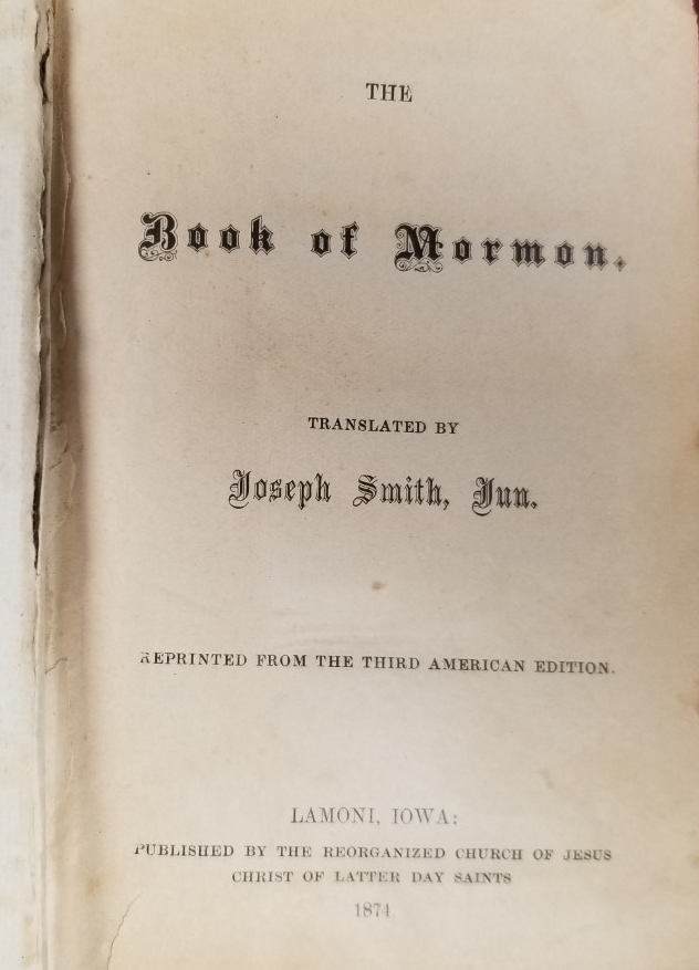 1874 ~ Book of Mormon ~ Lamoni, Iowa, Edition ~ RLDS Church ~ Black Cloth