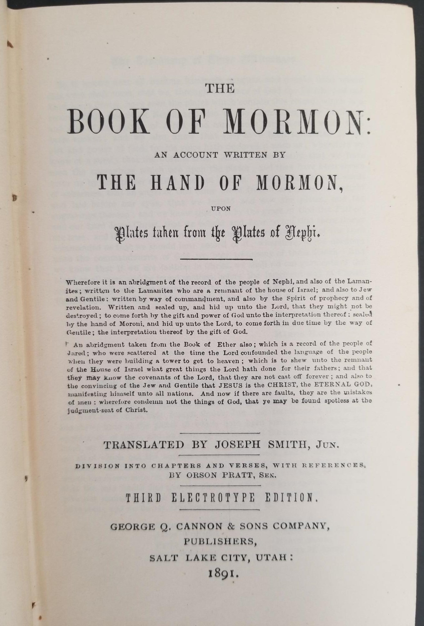 / 1891 — Book of Mormon — Salt Lake City Edition — Greenish-Colored Cloth Binding