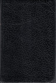 Small pocket edition of the Book of Mormon; black; leather-like; perhaps vinyl. Text is clean; small enough to fit in your shirt pocket!