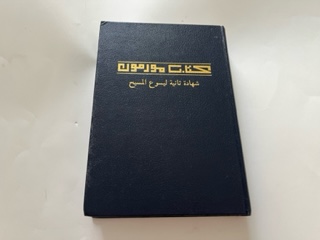 This is a hardbound and is in very good condition. There are some small scuffs around the corners. This is the Arabic Book of Mormon.