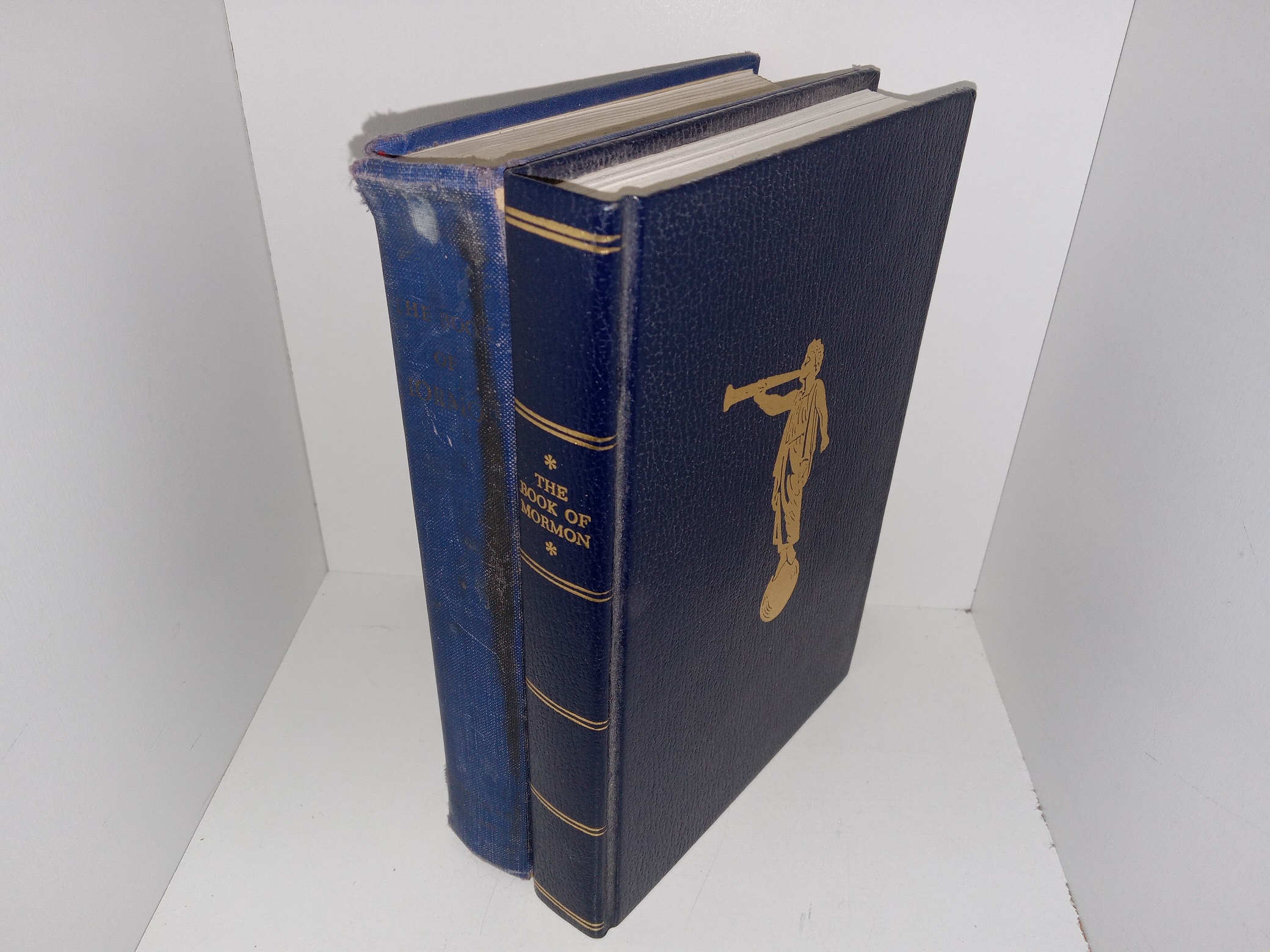 2 fair-good condition, blue hardcovers with no dust jackets. The cover of the 1961 copy has heavy scuffing, fading, scratches, some pieces torn off, stains, and slightly crushed corners. The cover of the 1980 copy has scuffing, and a patch of adhesive residue. The inside covers and flyleaves of the 1961 copy has stains, and some of the pages have stains on the edges, or marks or underlining in pencil. The 1980 copy has part of the internal binding is visible, yellowing of the inside covers, and some writing in pencil on the first page, but the text and illustrations throughout are clean, clear, and legible.