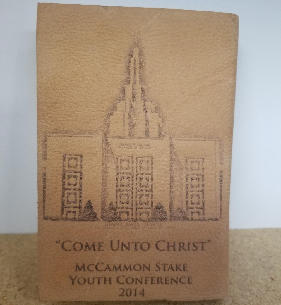 2012 — Book of Mormon — Mini Bound In Leather for the “McCammon Stake Youth Conference 1914” — “Come Unto Christ”