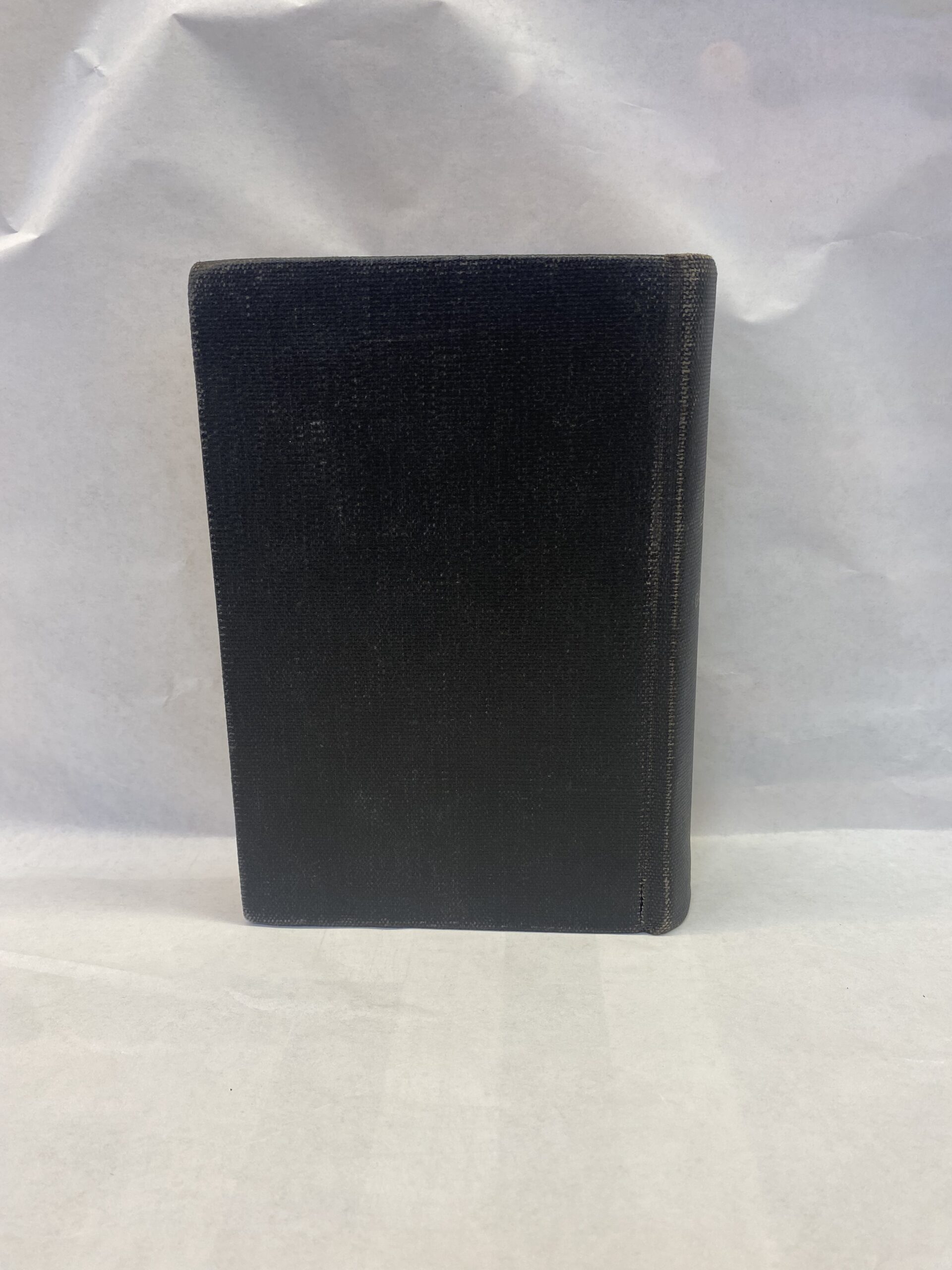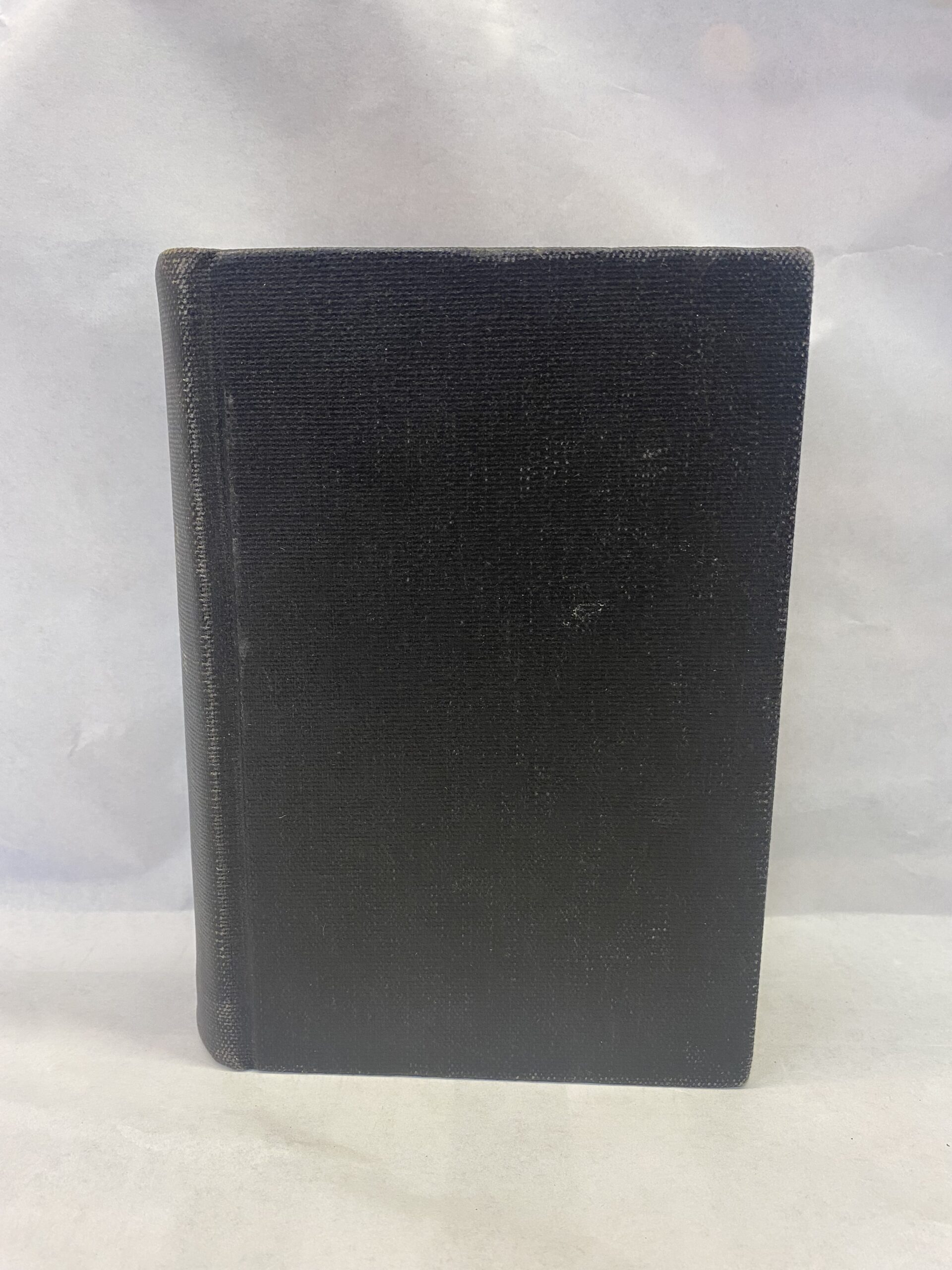 Good condition. The cover has scuffs, smudges, scratches, some fraying, and a tear in the back. The cover pages have markings in pen and pencil. Many of the pages are creased, but the rest of the pages are clean and unmarked. The edges of the pages have scuffs, scratches, many markings, and some stains.