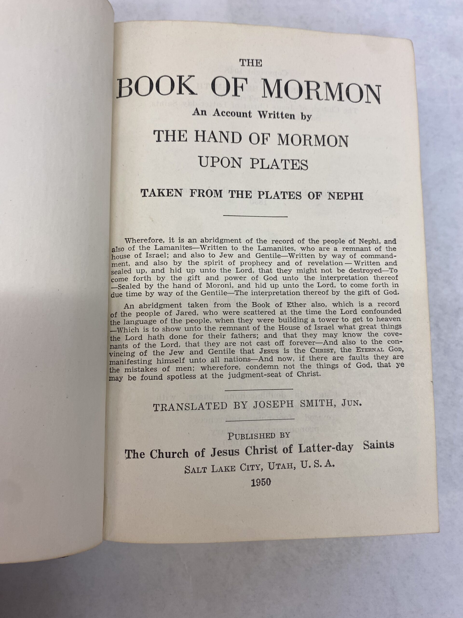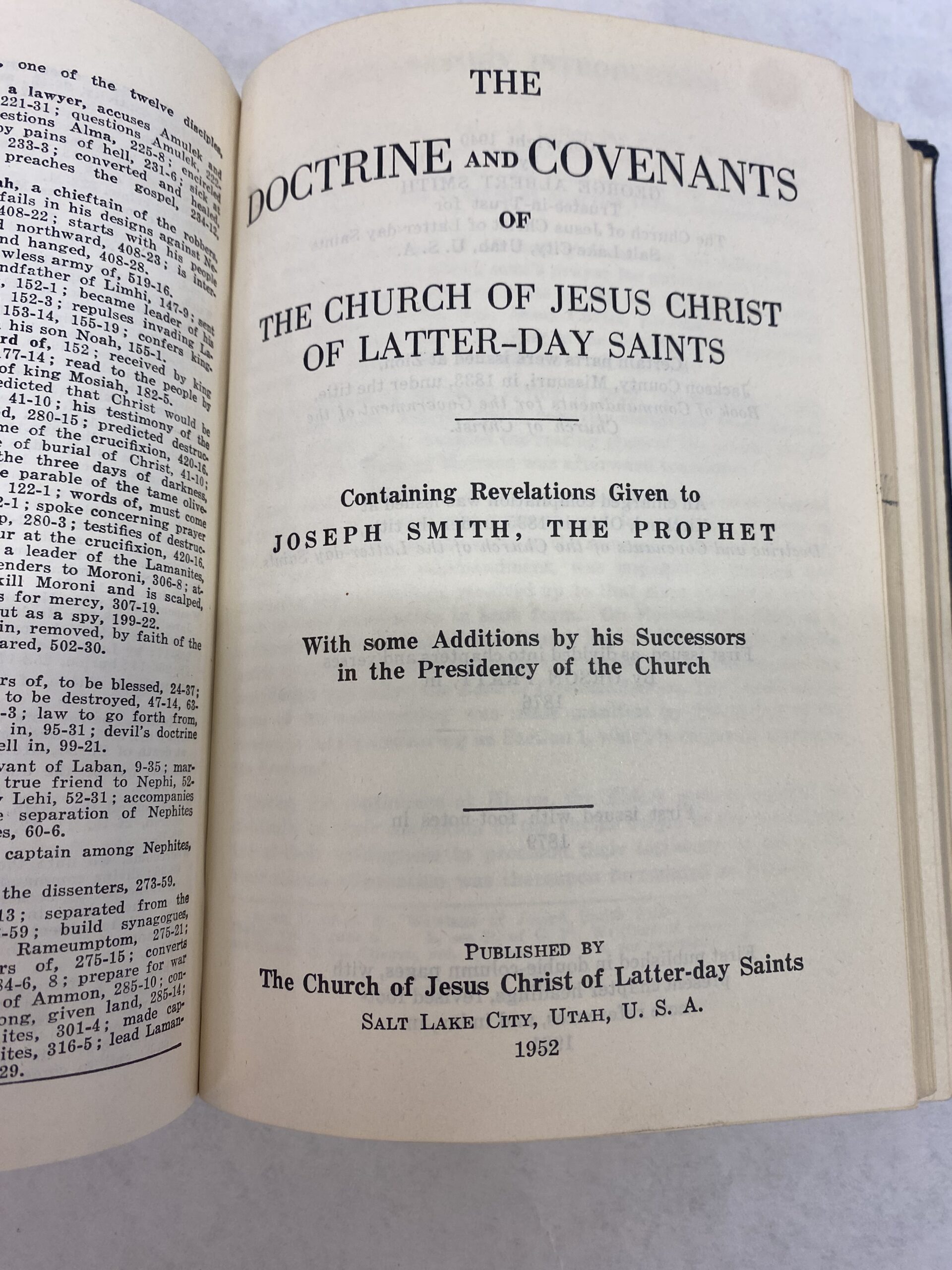 Book of Mormon, Doctrine and Covenants, and Pearl of Great Price. Hardcover, Book of Mormon published in 1950, Doctrine and Covenants and Pearl of Great Price published in 1952.