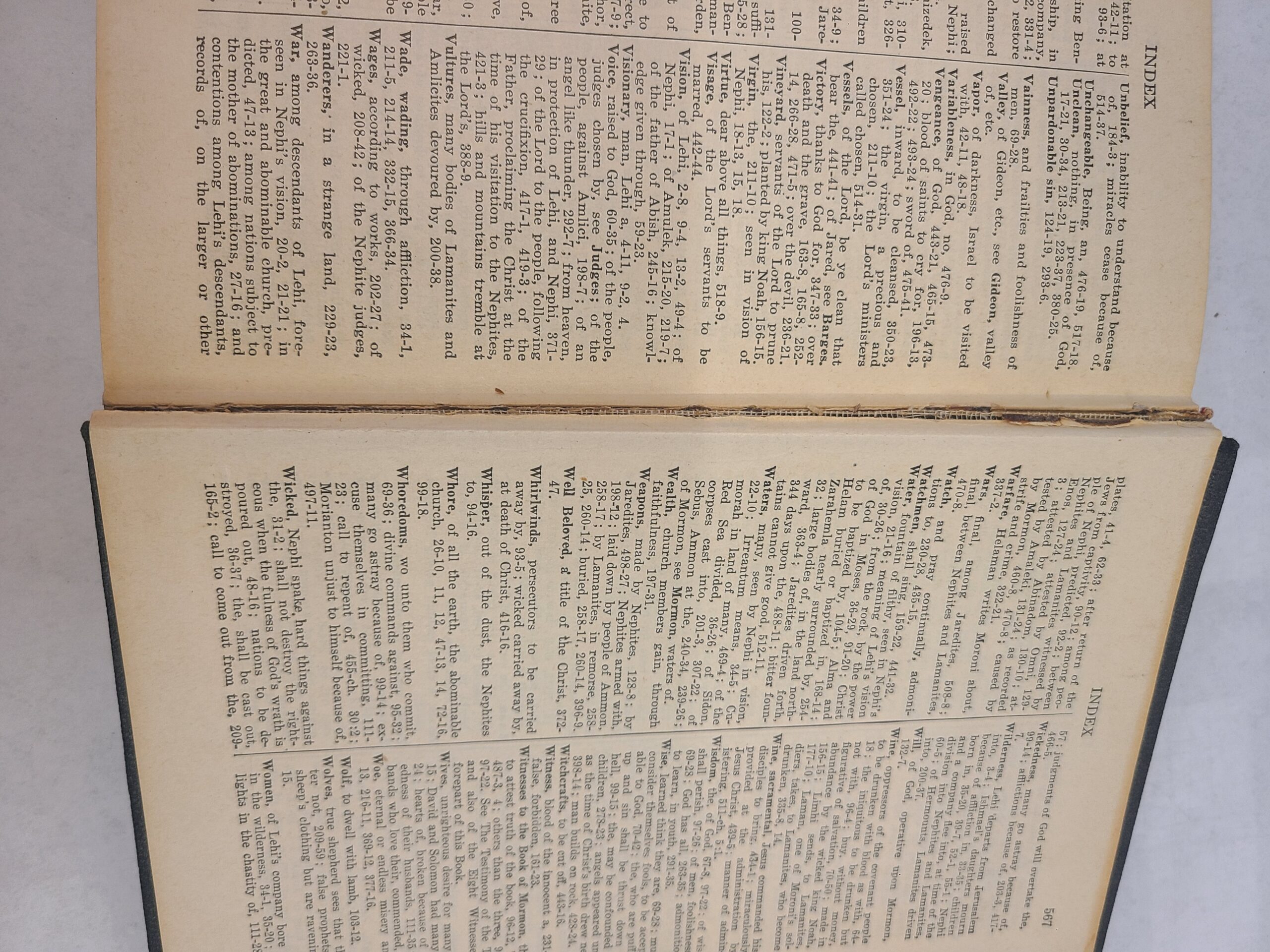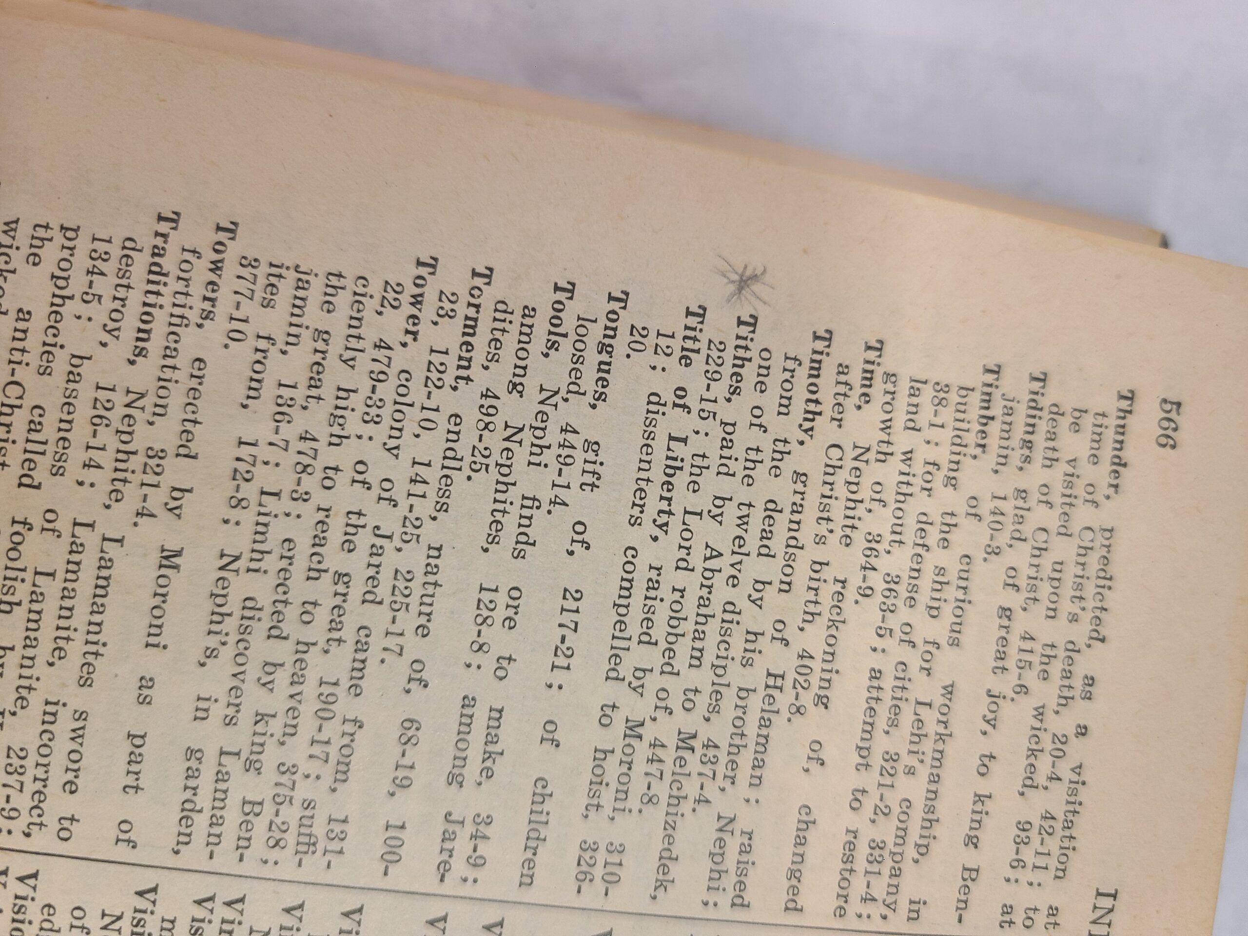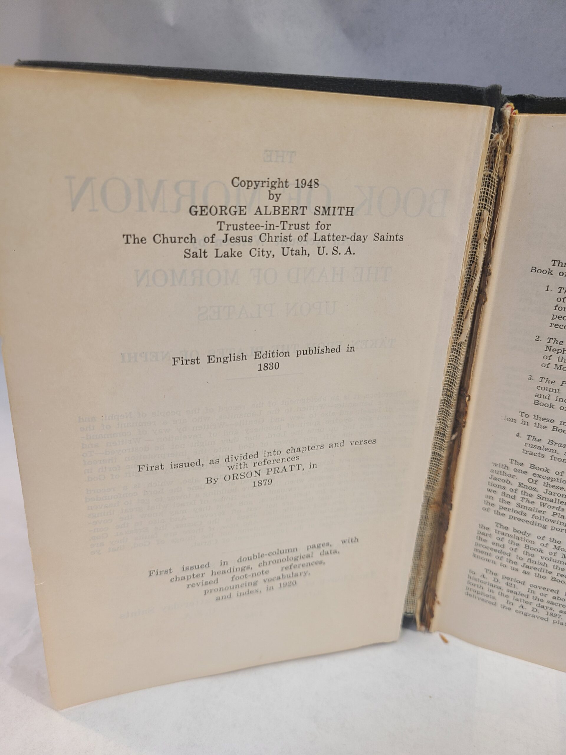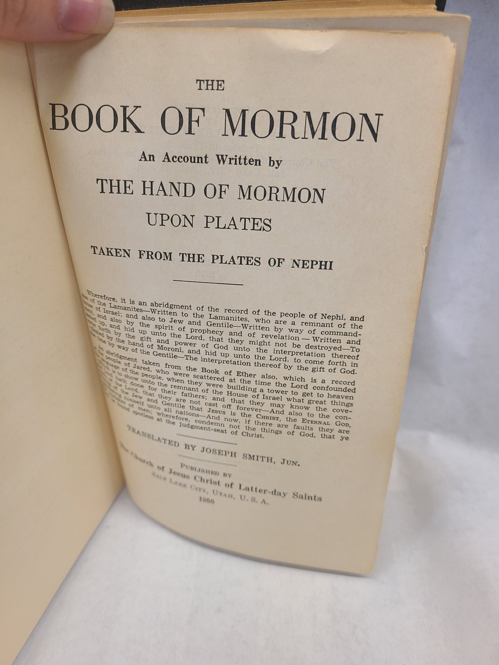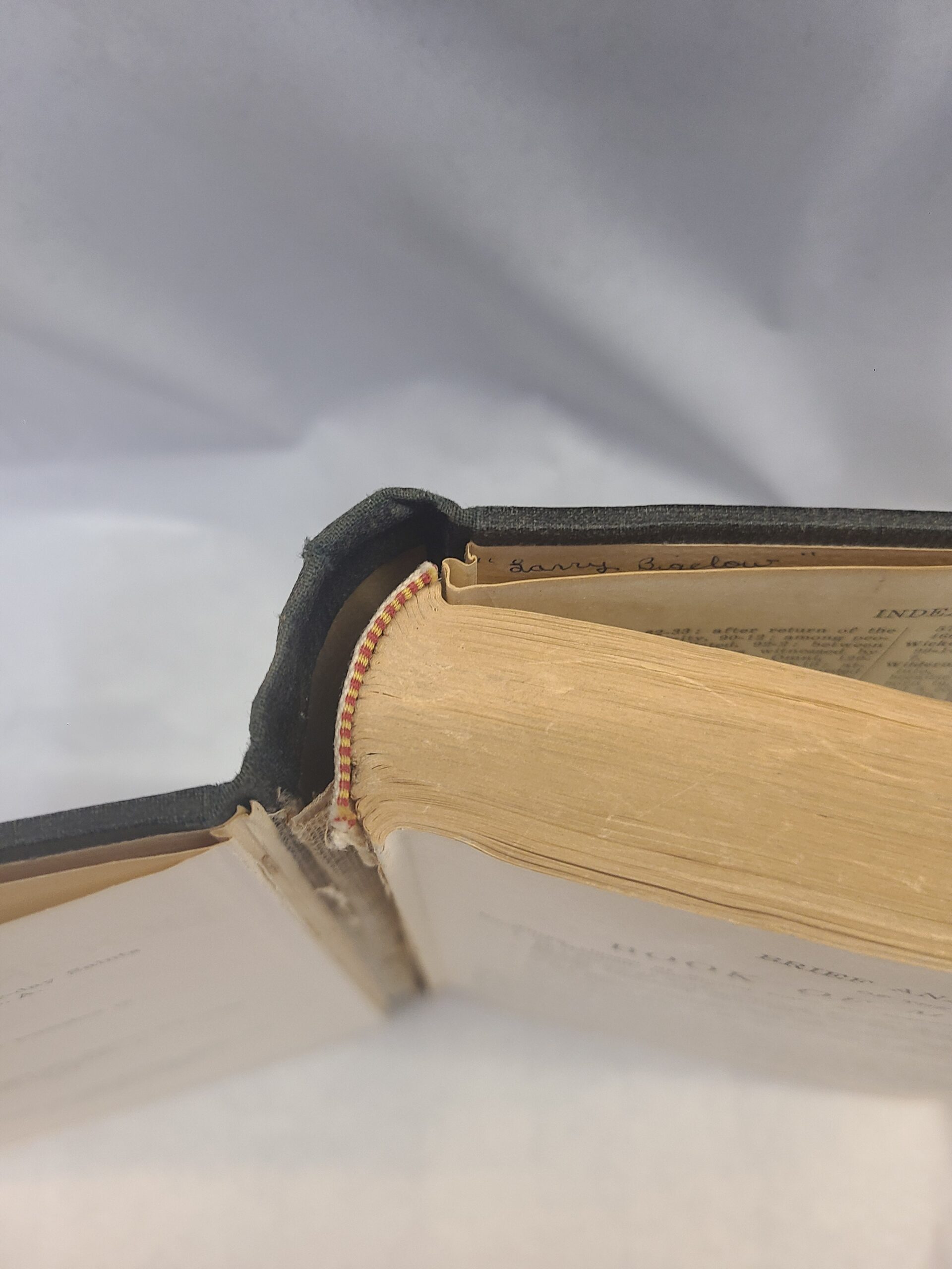 Book is starting to come loose from cover (cracking along spine inside on front and back covers) but the binding on the pages is still holding. Inscription on the inside front cover and some markings in pen and pencil throughout. Light scrapes/smudges to front and back covers. Light wear to edges/corners.
