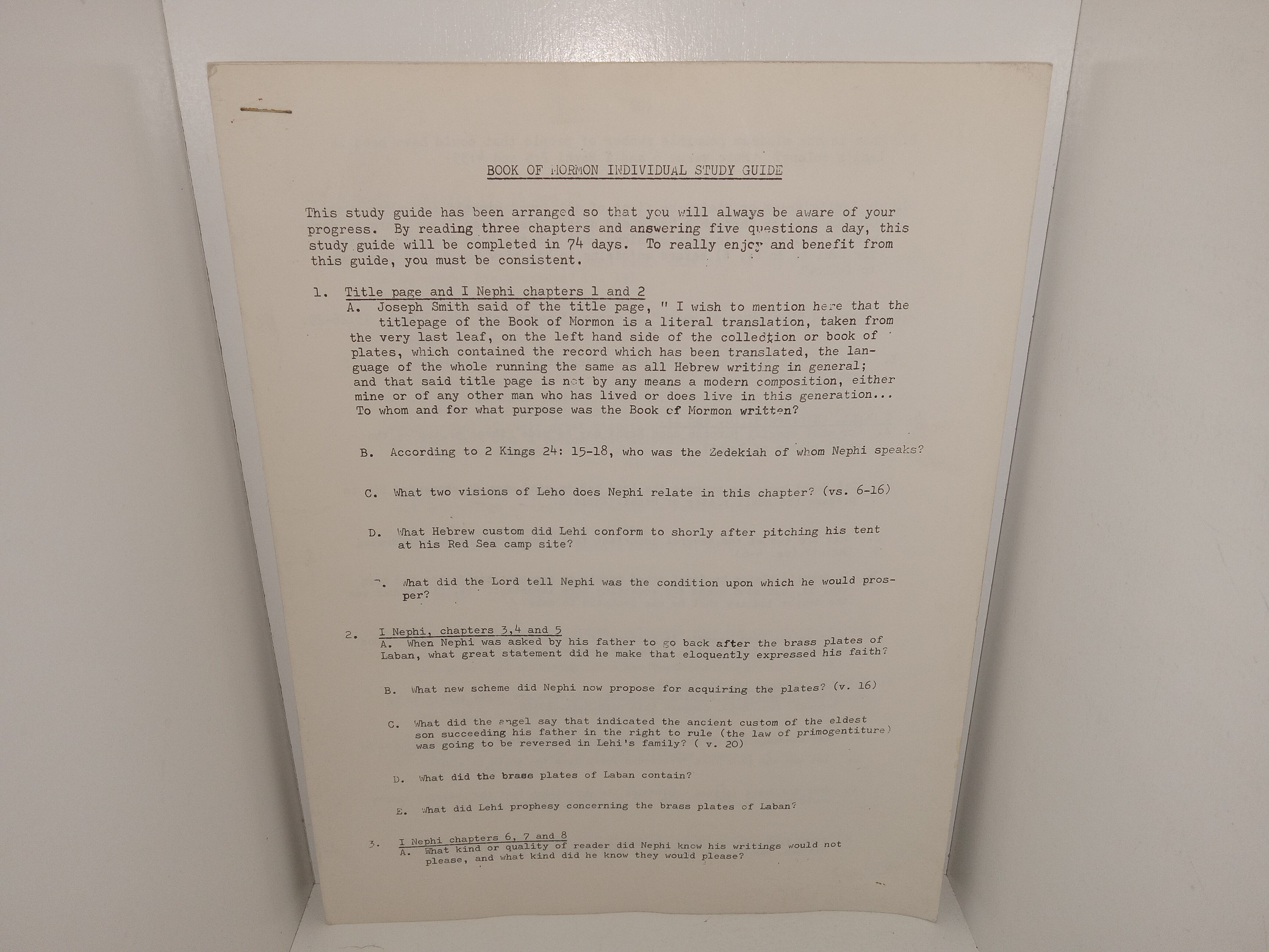 Fair-good condition, thin, cream book comprised of loose-leaf pages stapled together in the top corner with a single staple. The third page has writing in pencil used for pricing. Text throughout is clean and legible.