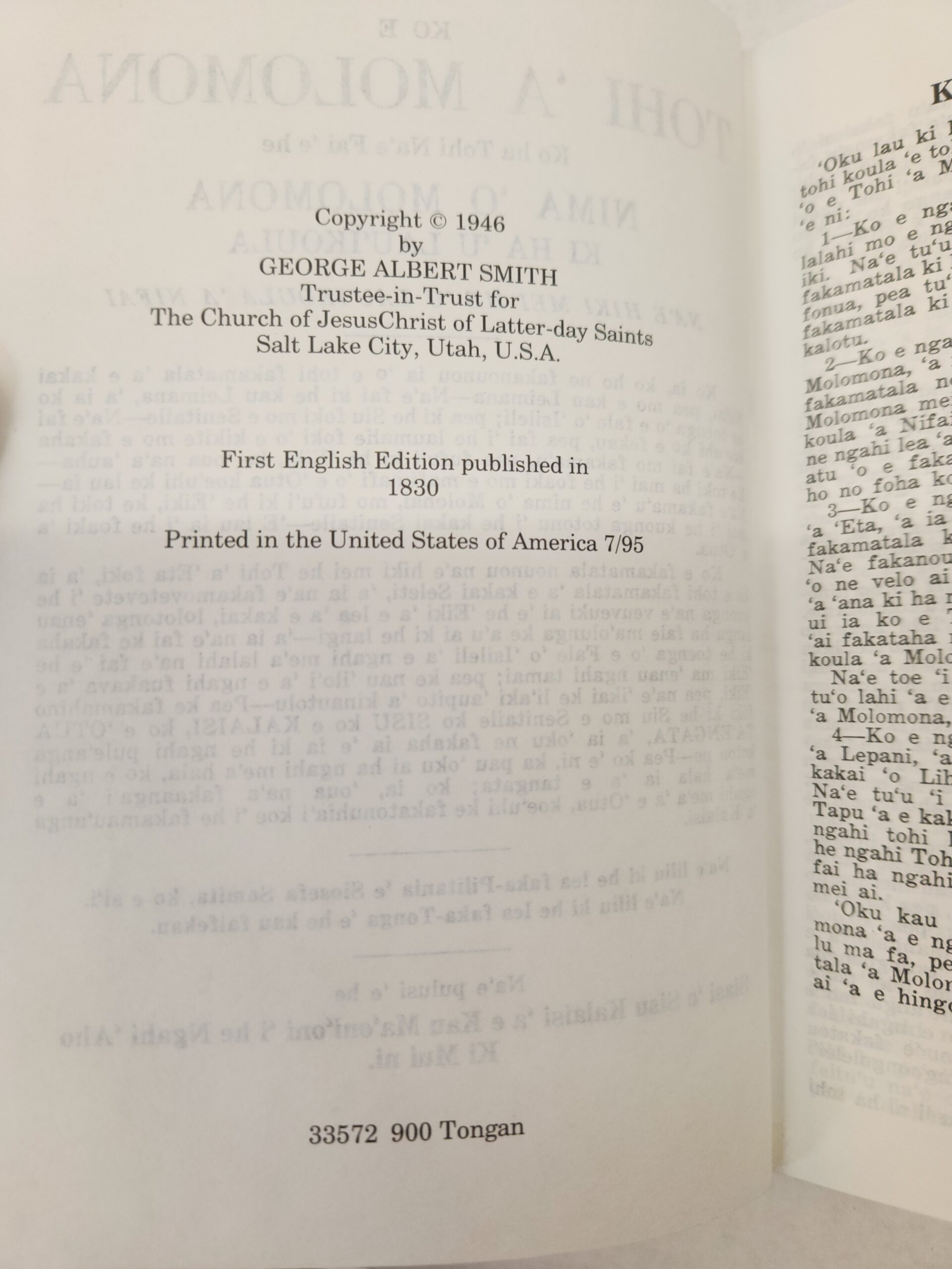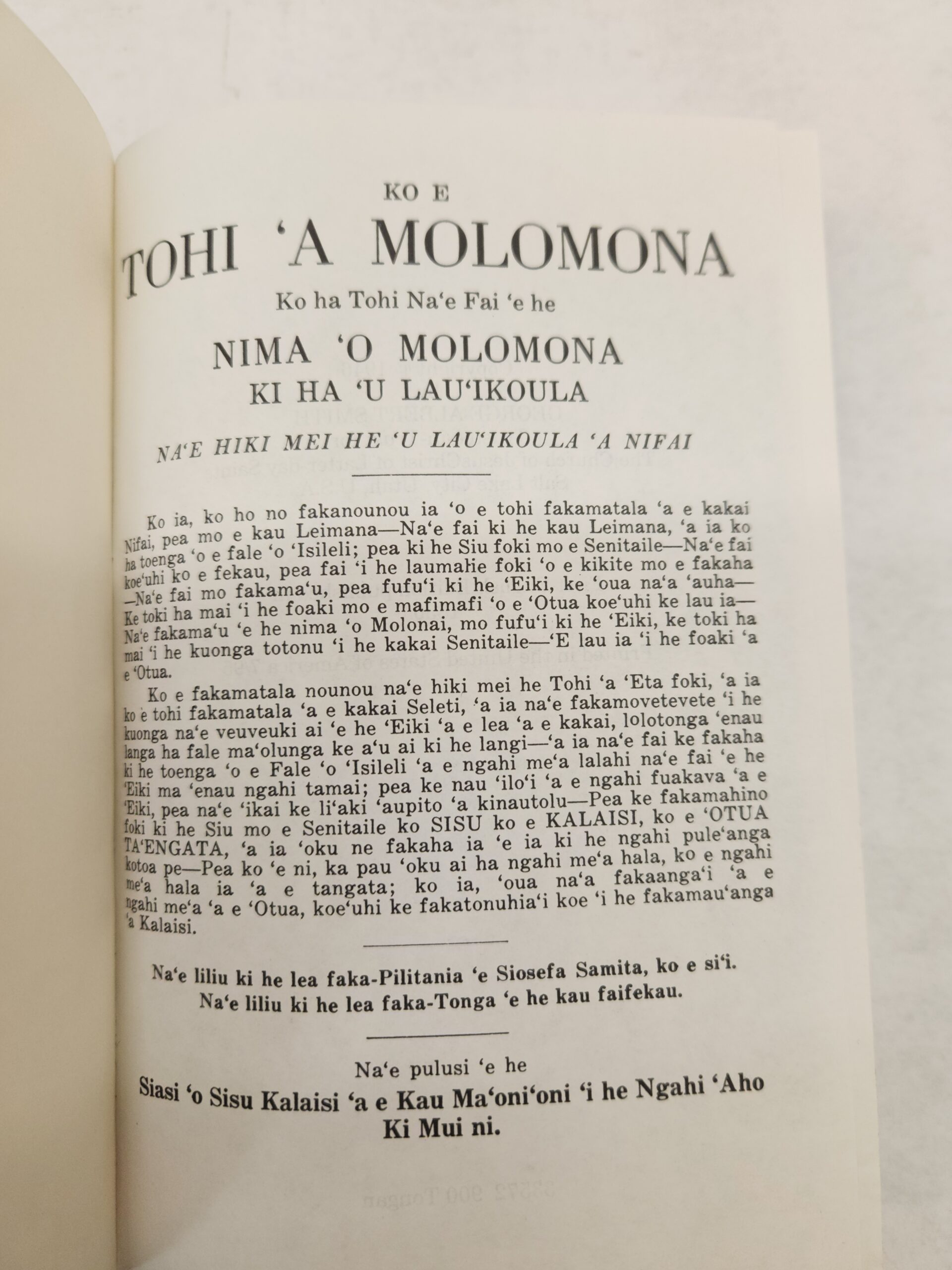 Ko E Tohi ‘A Molomona:: Ko ha Toe Fakamo’oni ‘e Taha ‘o Sisu Kalaisi (Tongan, 1995, Hardcover)