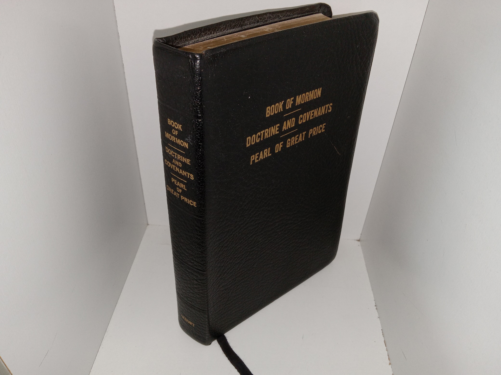 Fair condition, black, leather-bound book. The cover has no visible marks. Some pages have writing or marks in pen or pencil, or slight creases.