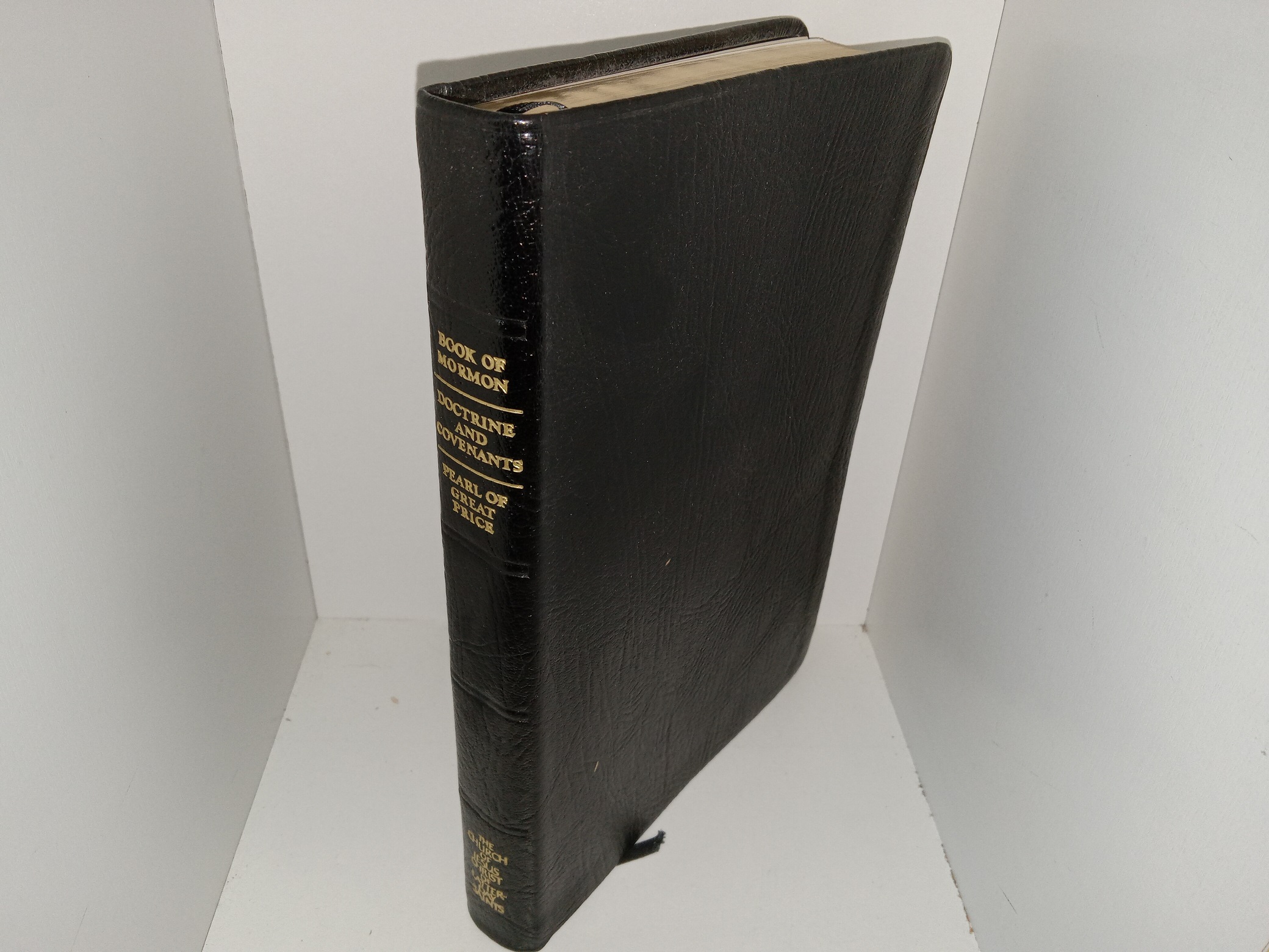 Fair condition, black, leather-bound book. The cover has scuffing. some pages have creases or wrinkling, or highlighting in marker. The title page has writing in pencil.