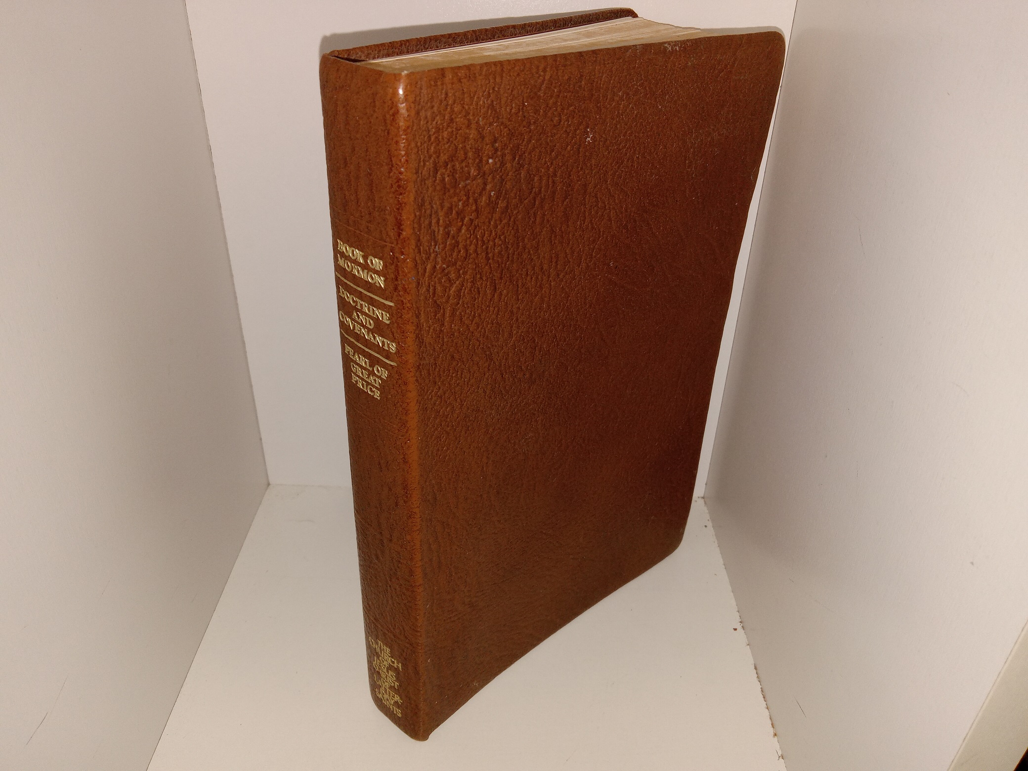 Fair condition, brown vinyl book. The cover has some scuffing, and some scratches. The pages have creases and wrinkling. The title page has writing in pencil. Text and illustrations throughout are clear and legible.
