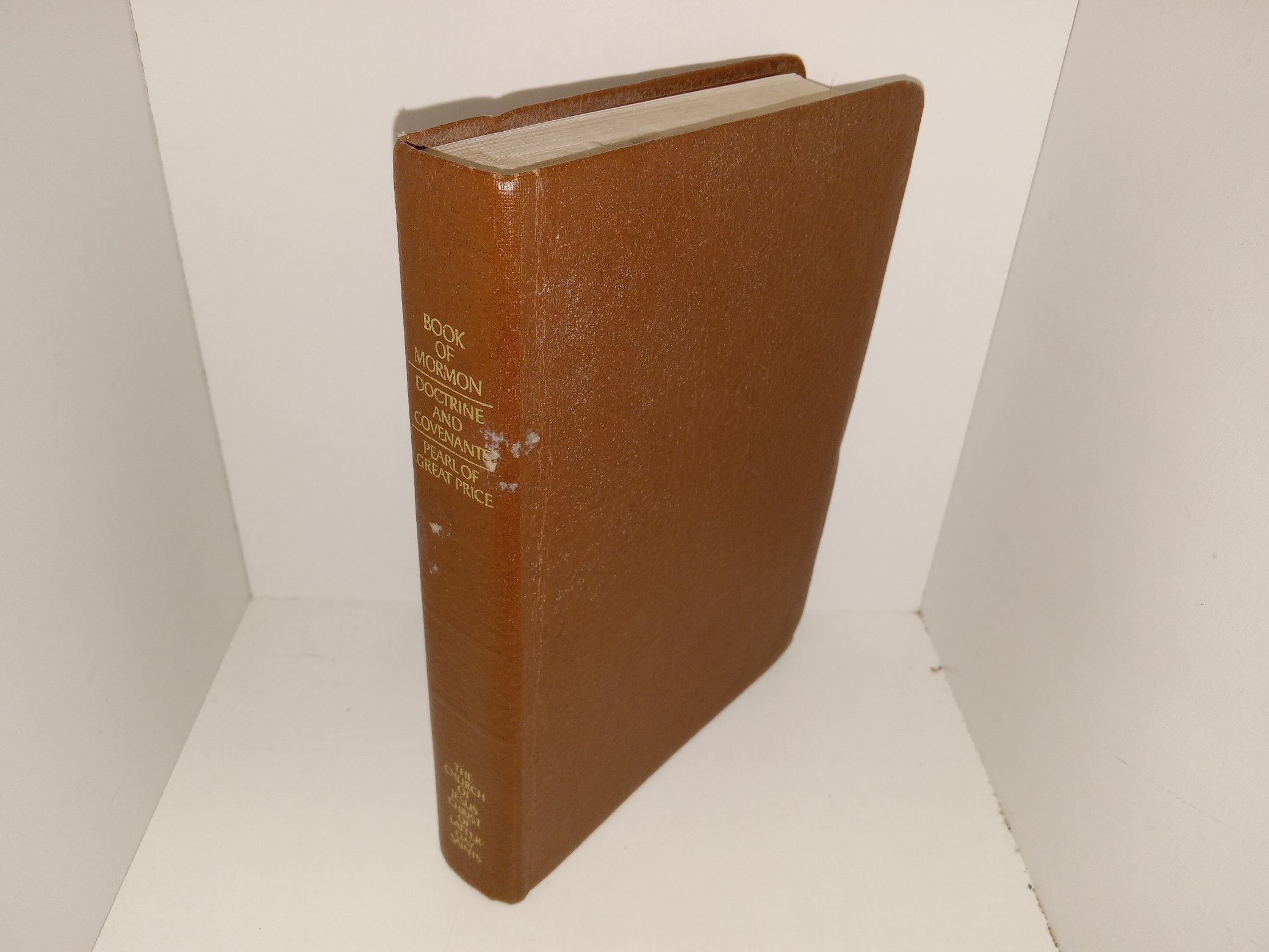 Fair-good condition, brown vinyl book. The cover has some small stains, slight creasing and some dents. The front flyleaf has writing in marker on the front, and a large ink stamp on the back. The title page has writing in pencil. Some pages have faint stains on the edges. Text and illustrations throughout are clean, clear, and legible.
