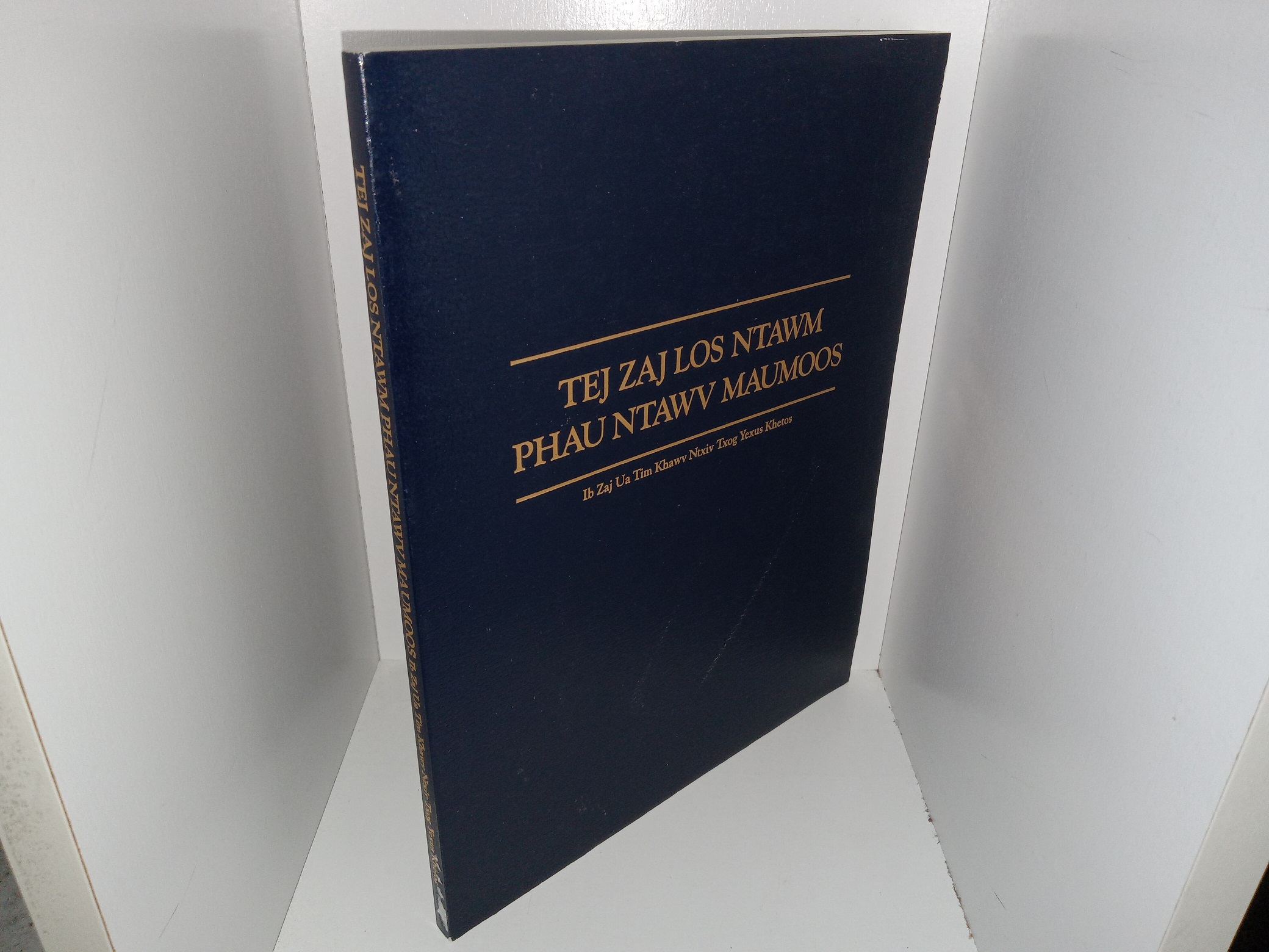 Fair condition, large, thin, dark blue softcover. The cover has stains, scuff marks, scuffing on the corners and edges, small tears, and the remains of a sticker on the spine. The first page has writing in pencil. Text throughout is clean, clear, and legible.