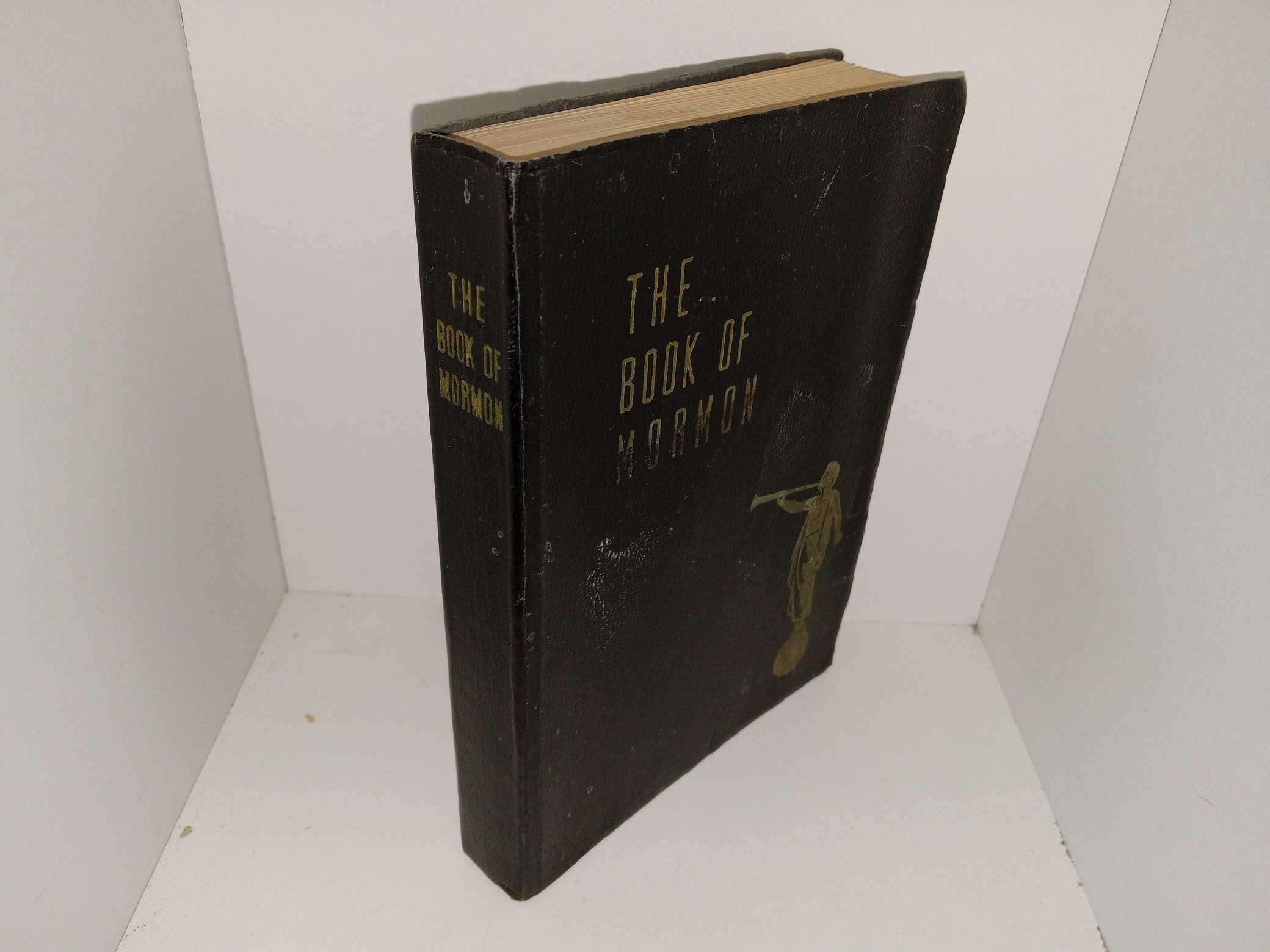 Fair condition, black softcover. The cover has stains, scuffing, dents, and some creasing at the corners and edges. The front inside cover has a large patch of tearing from where a sticker was removed, with some pieces of said sticker. Some pages have yellowing, tiny pieces torn off, or creases. The first page has scribbles in marker, and writing in pencil. Text throughout is clear and legible.