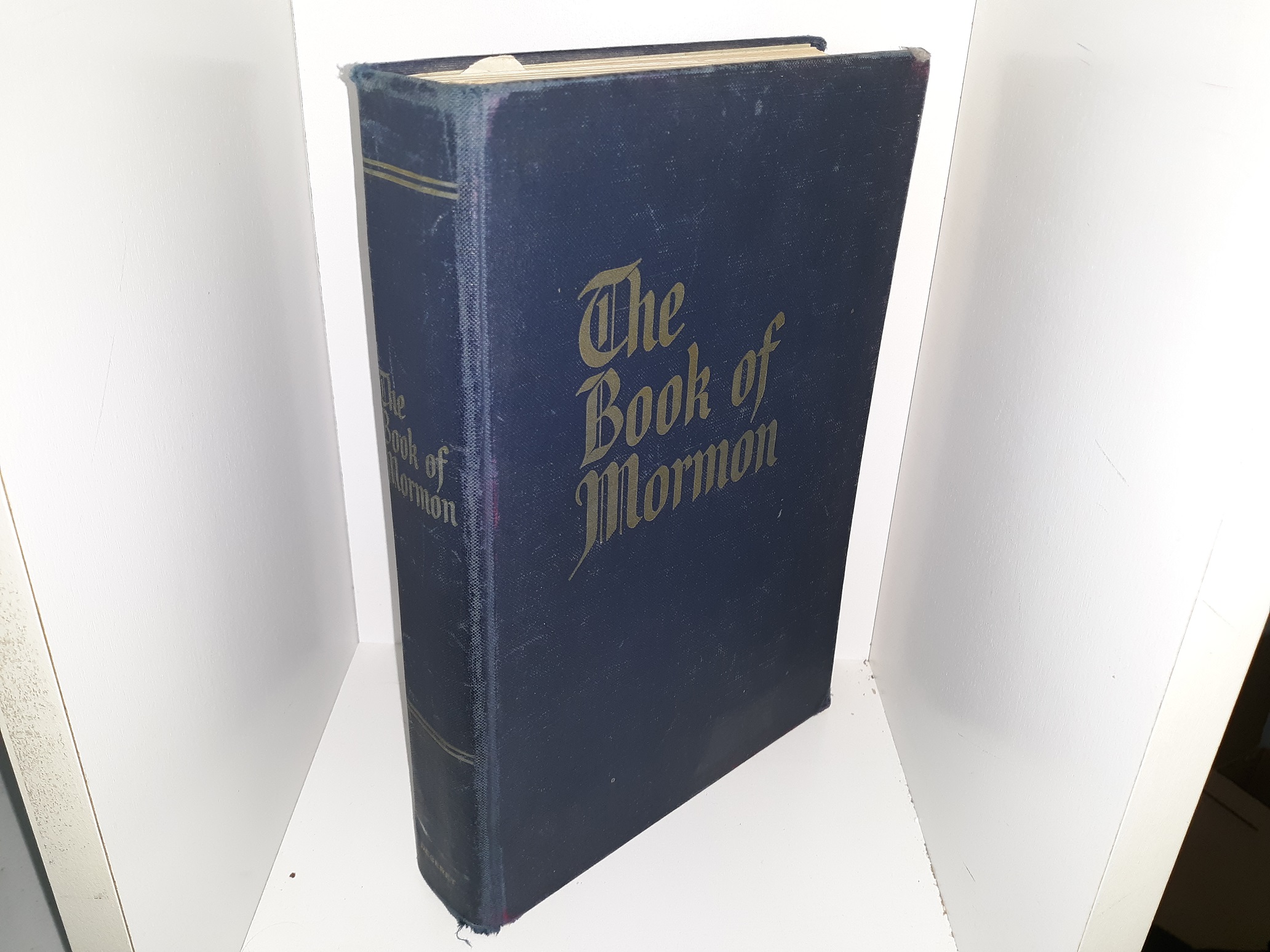 Fair condition, large, dark blue hardcover with no dust jacket. The cover has fading, some small bubbles, scuff marks, some residue, some bent corners, and some fraying and tears at the corners and edges. The binding is slightly loose. The inside covers and flyleaves have yellowing at the edges. The front inside cover has some writing in pen. The front flyleaf has writing in pencil. A couple pages are slightly creased at the corners. Text and illustrations throughout are clean, clear, and legible.