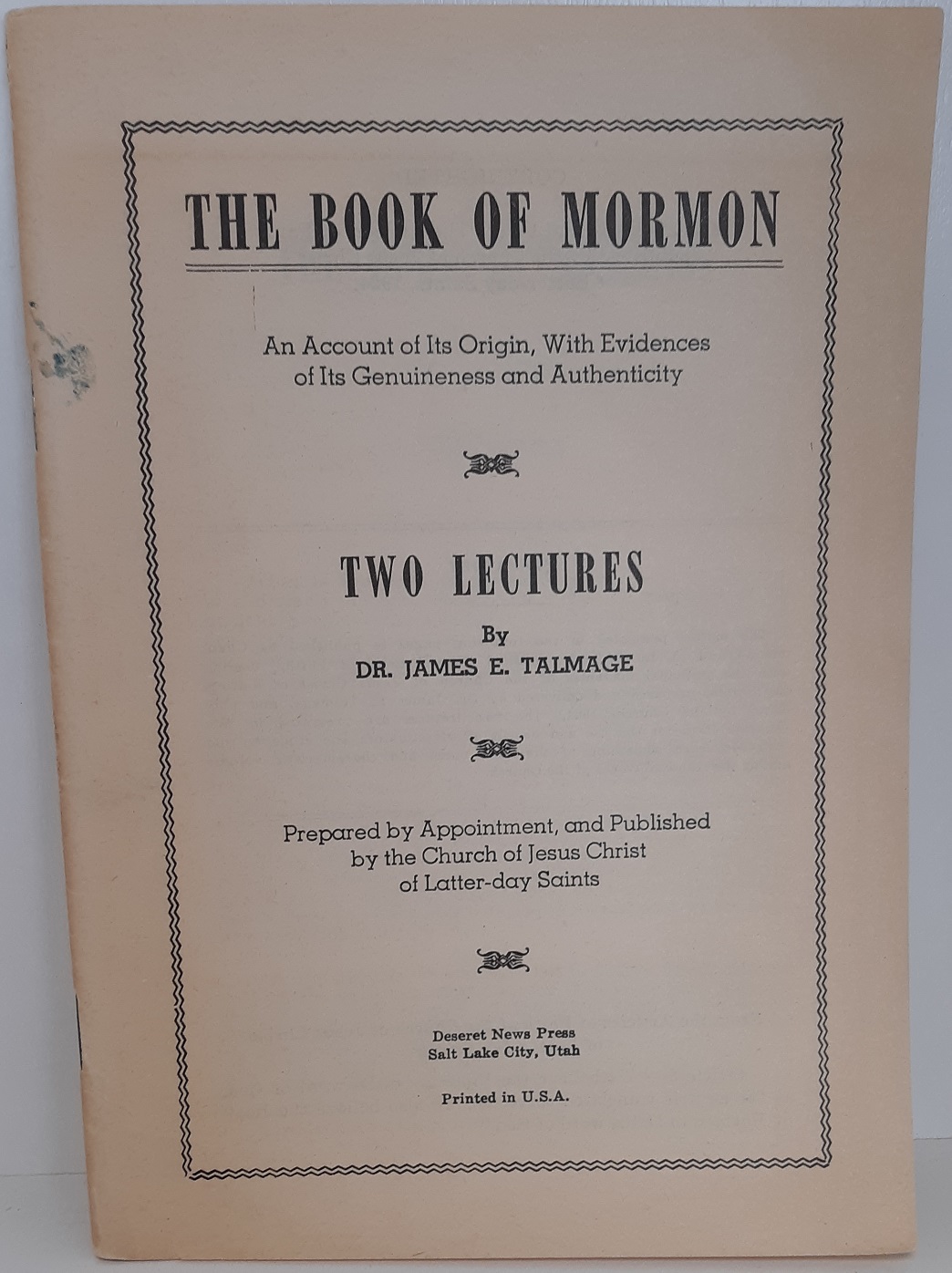 The Book of Mormon: An Account of Its Origin, With Evidences of Its Genuineness and Authenticity: Two Lectures