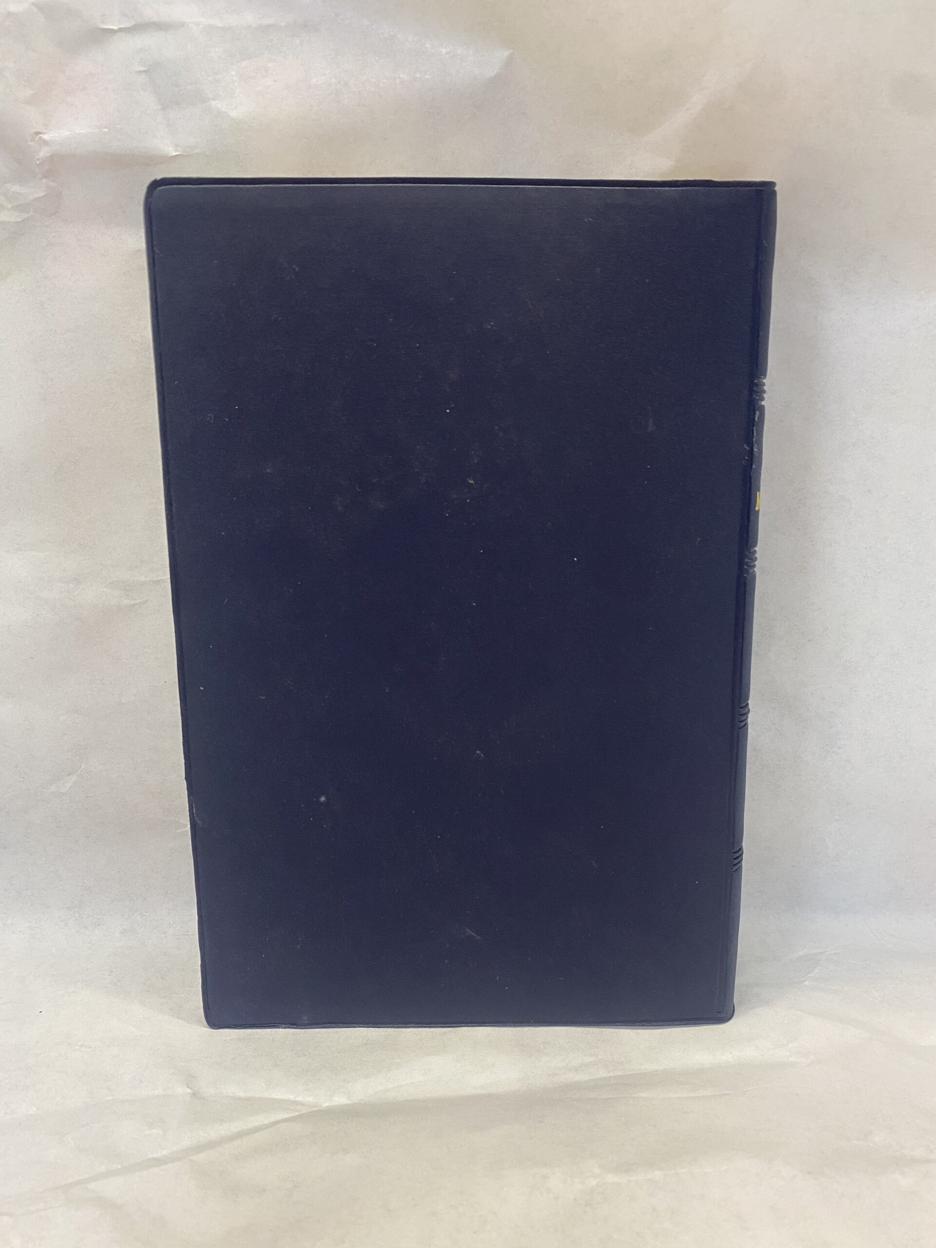 Good condition. The cover has scratches, scuffs, smudges, and some warping/denting at the top. The cover pages are heavily smudged with some mild markings. A few pages have some creasing and markings, but the rest of the pages are clean and unmarked. The edges of the pages have smudges and scratches. The binding is a bit loose. The book comes with a silk bookmark that is fraying.