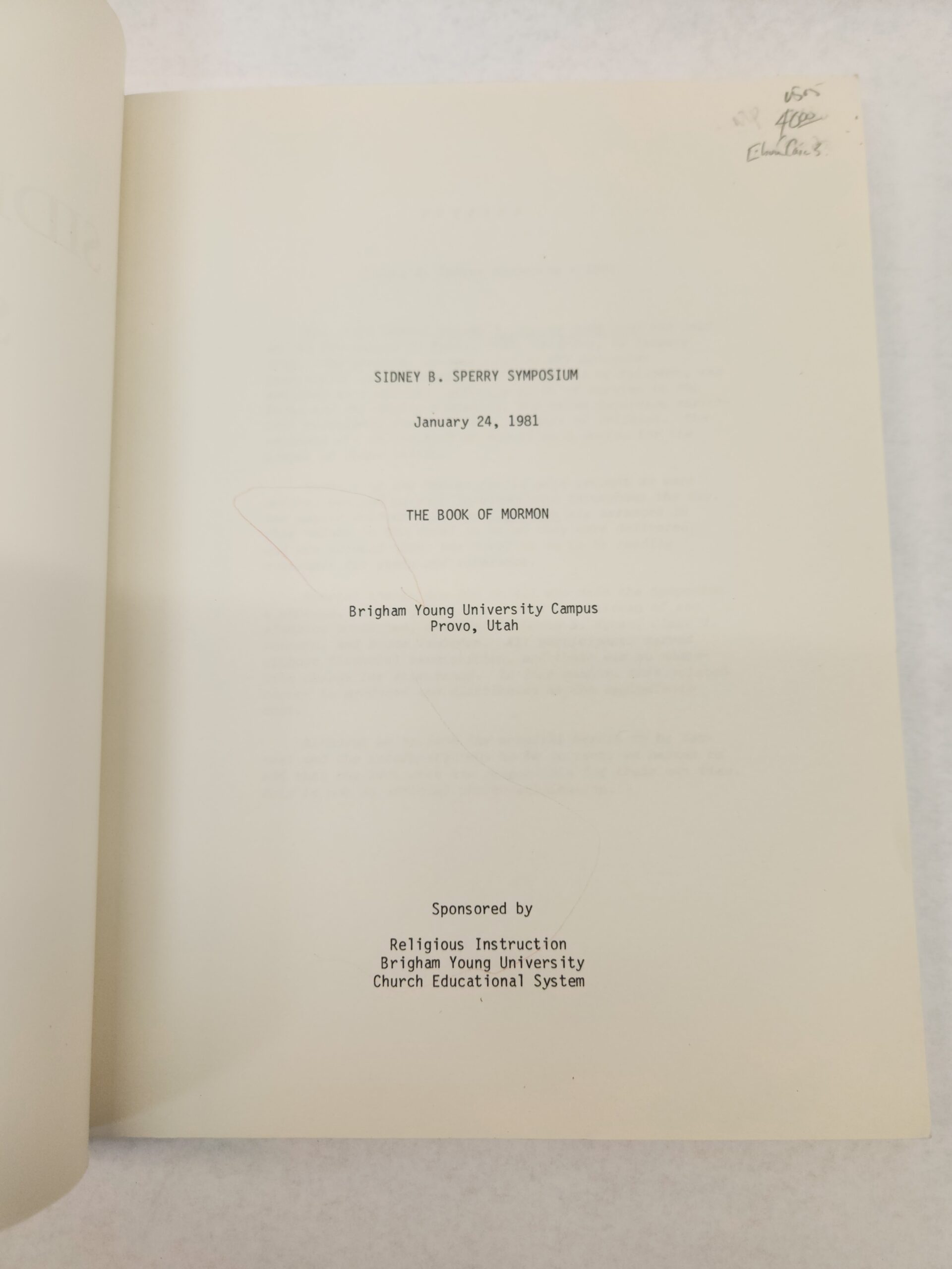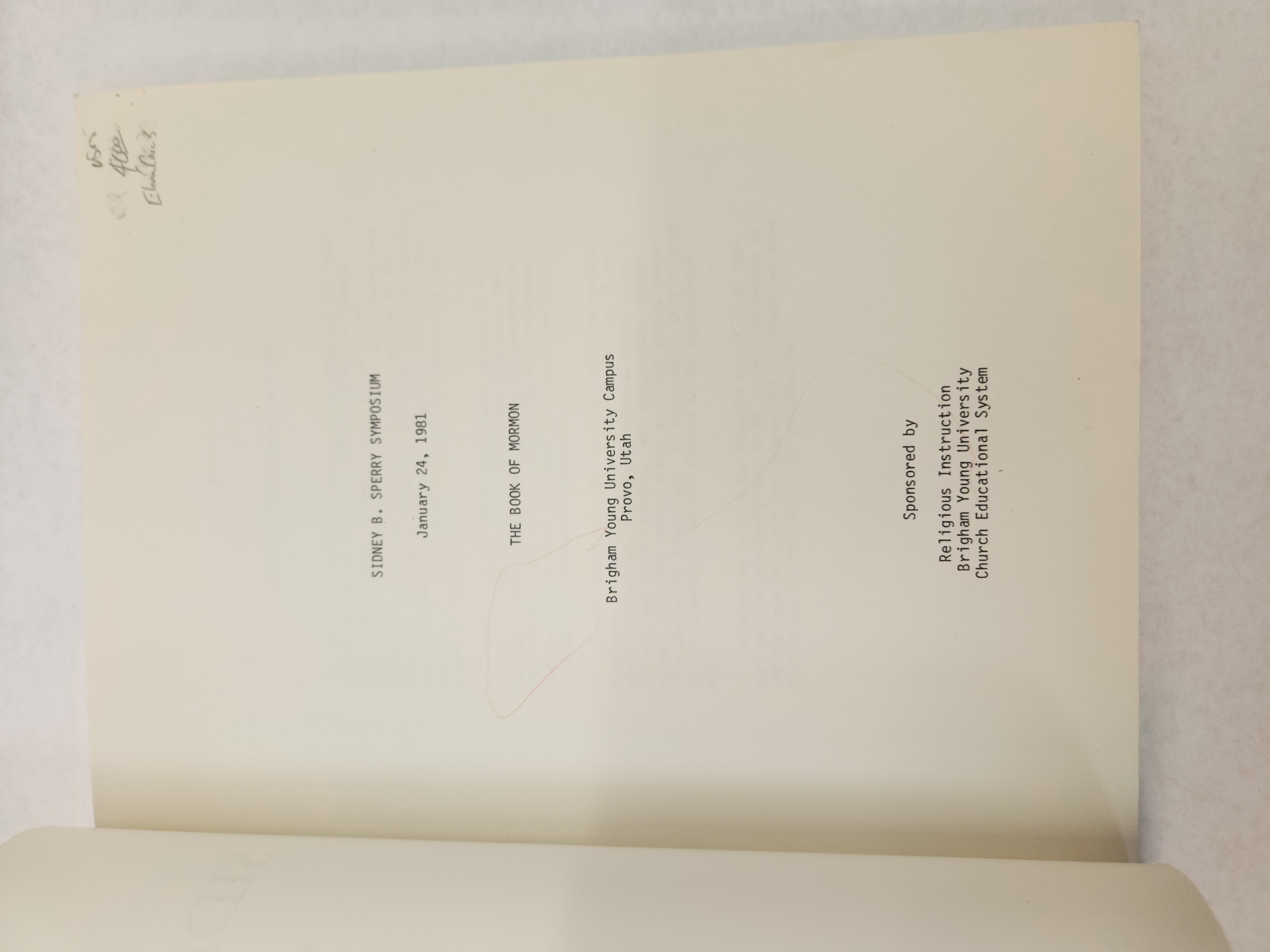 The Ninth Annual Sidney B. Sperry Symposium:: The Book of Mormon, January 24, 1981, Brigham Young University Campus, Provo, Utah (1981, Paperback) Some annotations in red pencil throughout the book. Binding is good. Corner/edges show some shelf wear. Cover shows some wear with a couple stain marks, light scratch marks, and a few smudge marks.