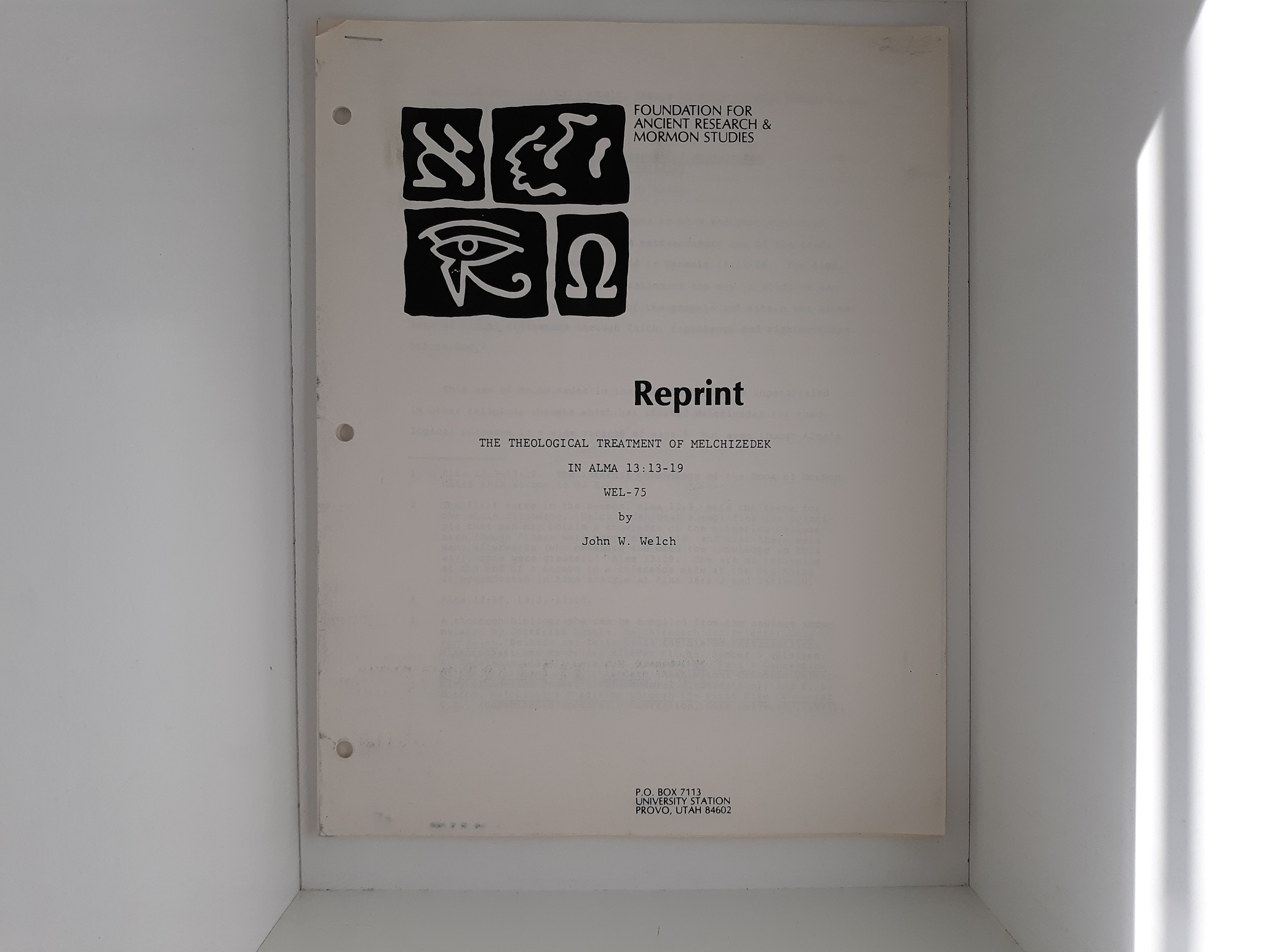 The Theological Treatment of Melchizedek in Alma 13:13-19: WEL-75 Reprint