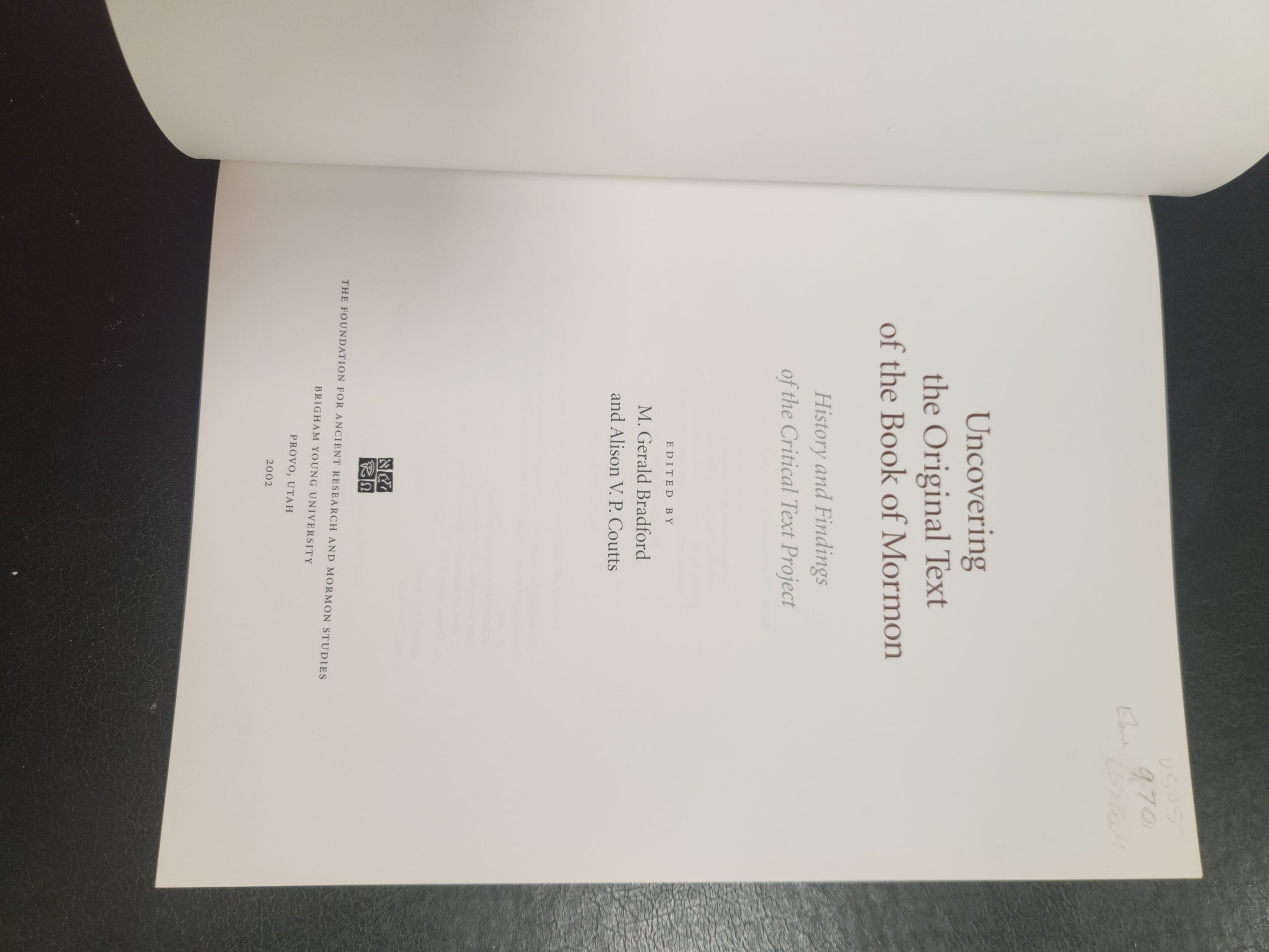 Uncovering the Original Text of the Book of Mormon:: History and Findings of the Critical Text Project (Paperback, 2002) Front and back cover has some light scratch marks across it. Corner and edges show little shelf wear. No marks on pages except for the first page (see picture in gallery). Binding is good.