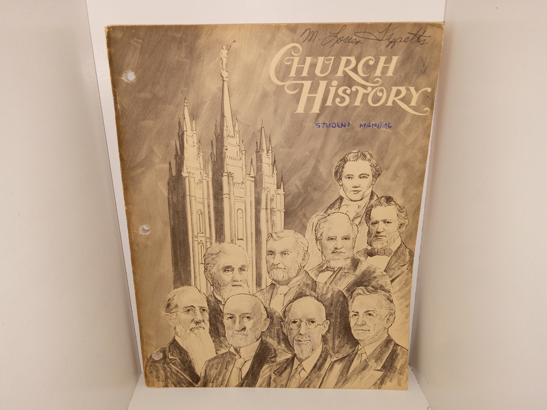 Fair condition, large, thin, staple-bound softcover with three holes punched next to the spine. The cover has writing in pen, small tears, small stains, and crushed corners. There are notes written throughout the book in pen. The title page has writing in pencil.