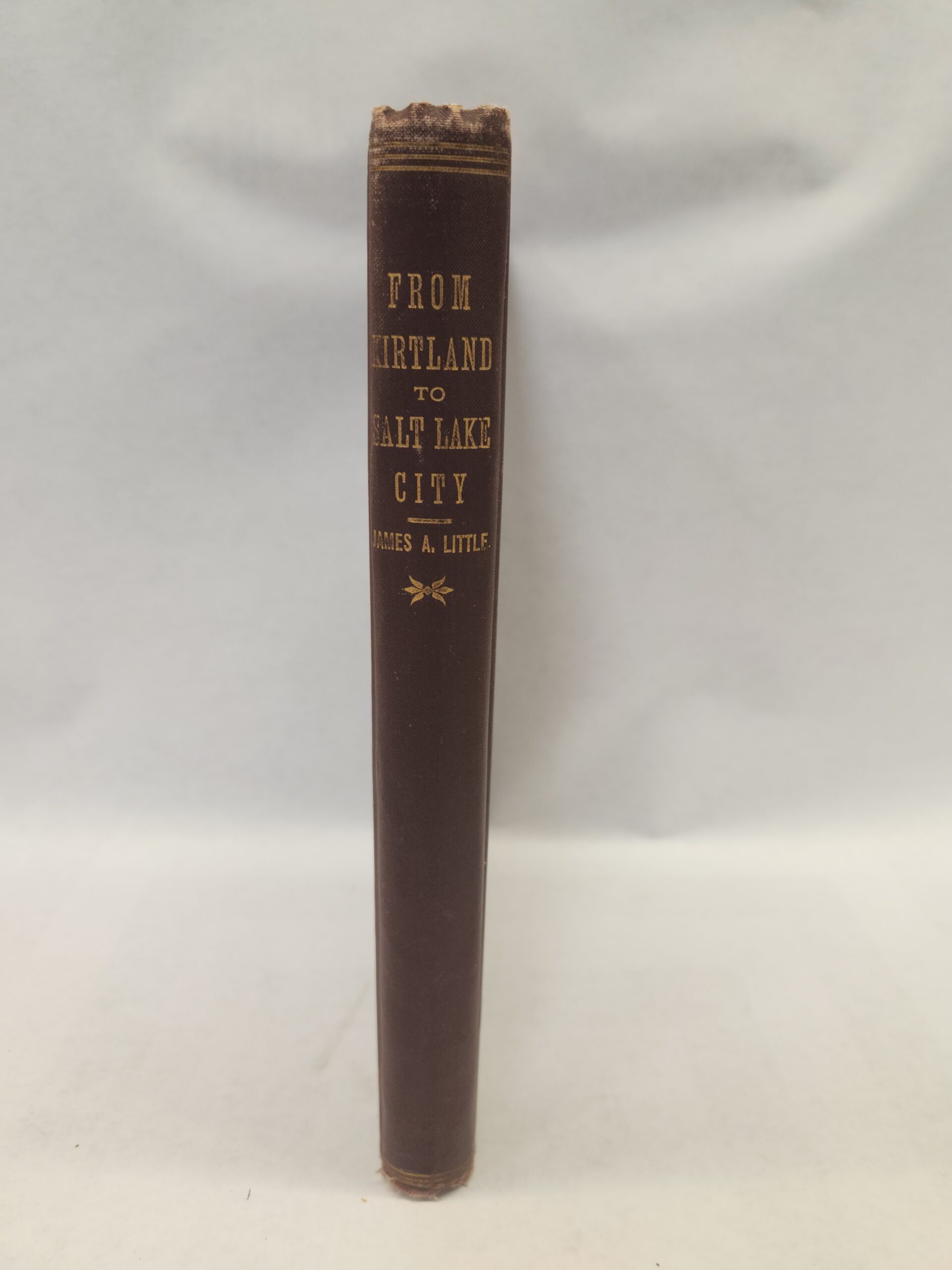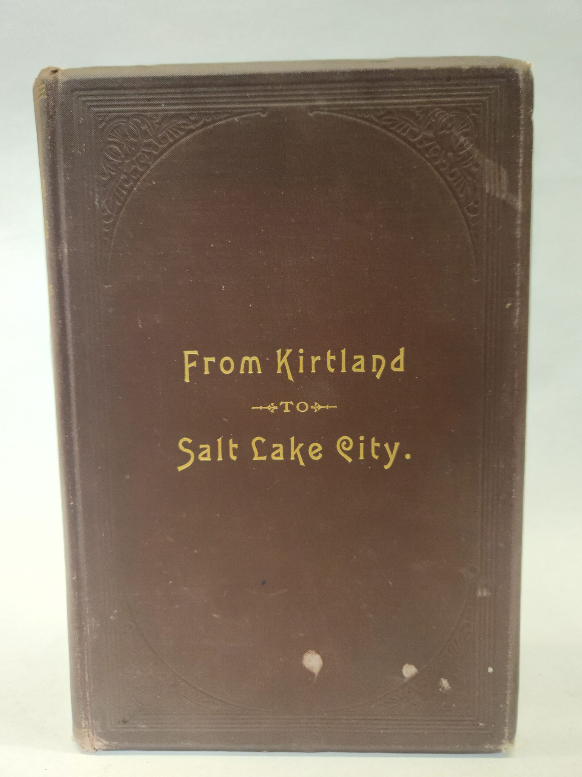 From Kirtland to Salt Lake City (1890,1st Edition, Hardcover) No writing/marks on the pages. Binding is still holding but starting to loosen (see pic in gallery). Corner and edges show shelf wear with dents, small tears, and scuff marks. Cover, front and back, shows some scuff marks, light scratches, and stain marks.
