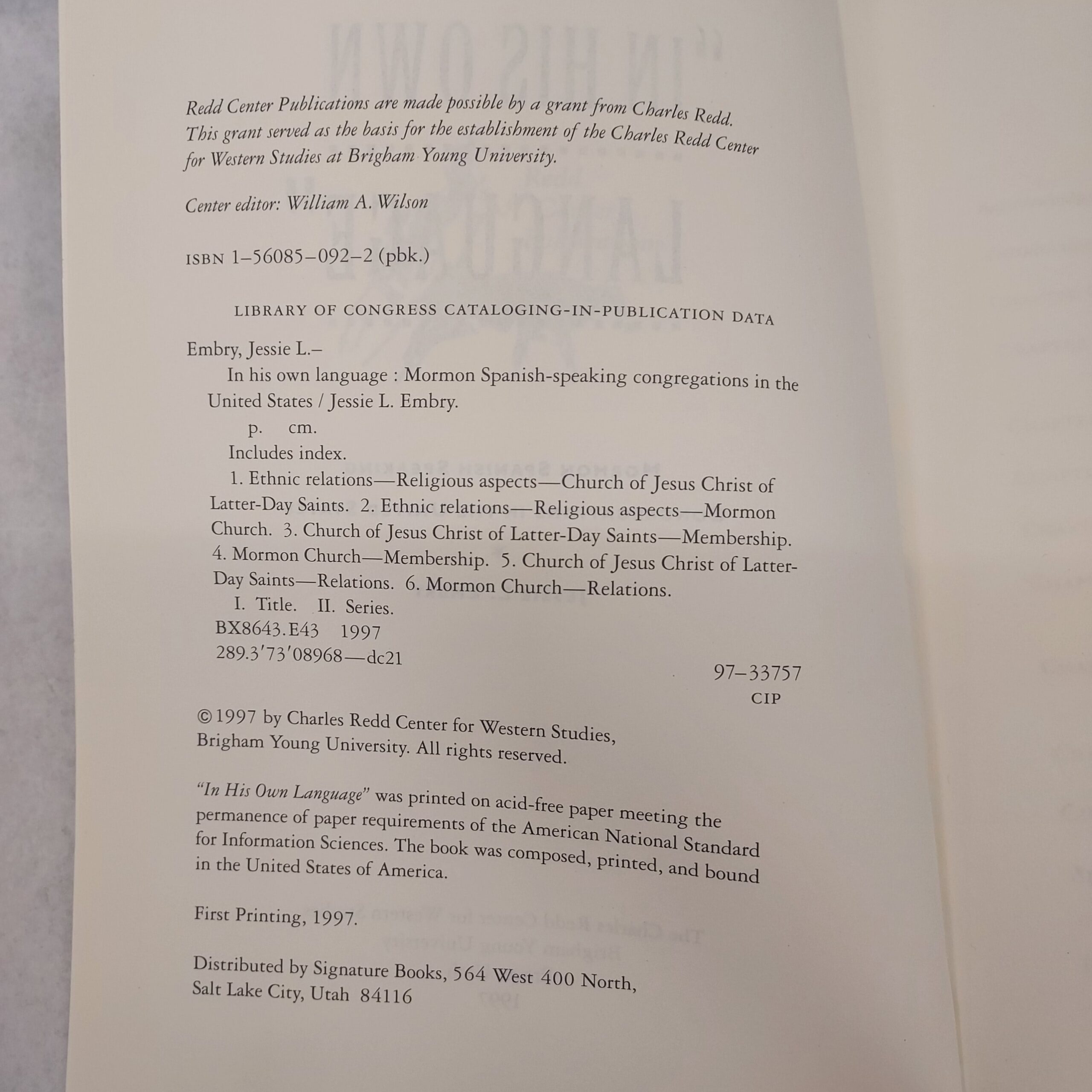 In His Own Language: Mormon Spanish Speaking Congregations in the United States by Jessie L. Embry-paperback-1997