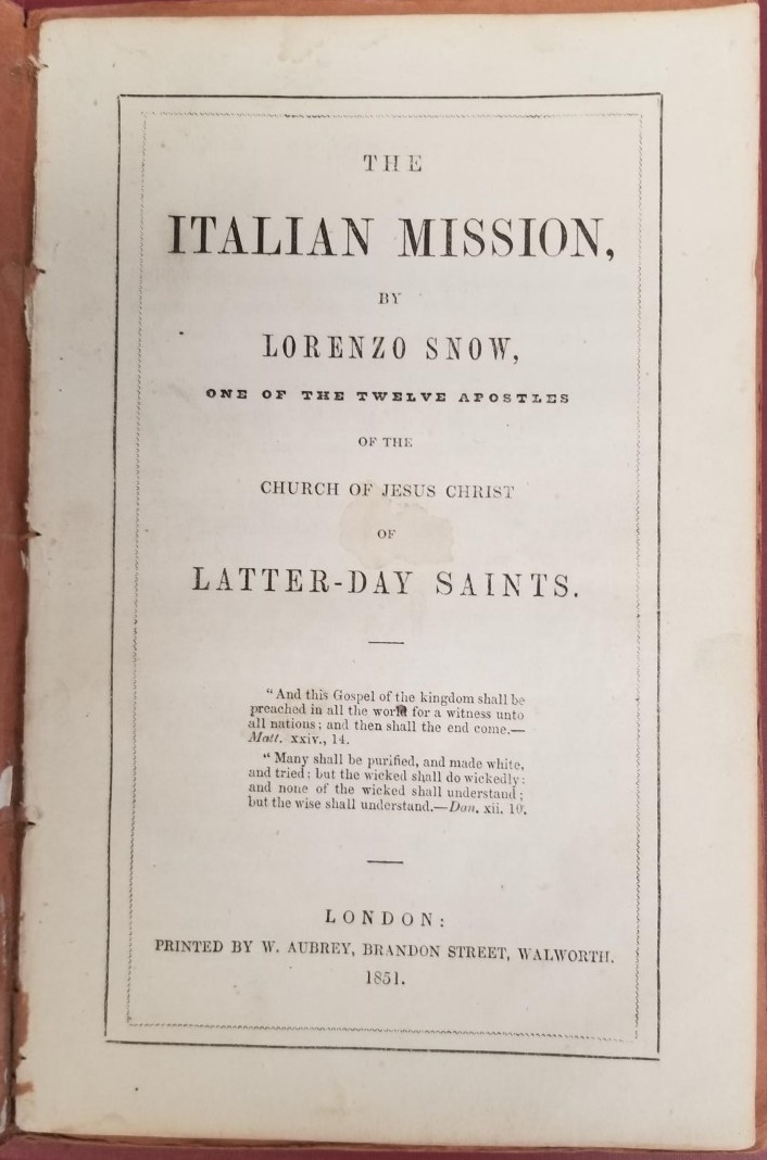 1851 — The Italian Mission — Lorenzo Snow, One of the Twelve Apostles of The Church of Jesus Christ of Latter-day Saints