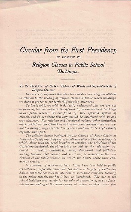 / 1905 ~ Circular from the First Presidency in Relation to Religion Classes in Public School Buildings