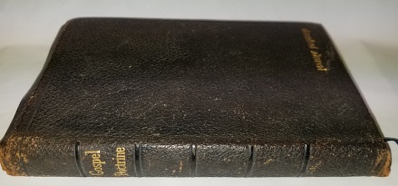 Smaller size bendable leather edition. Name engraved on front cover; some wear to binding, but not bad. Gold-leafed page edges; text is clean throughout; binding is solid.