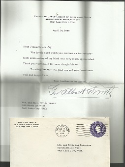 Letter dated April 14, 1949. Signed by Mormon Church President George Albert Smith.
