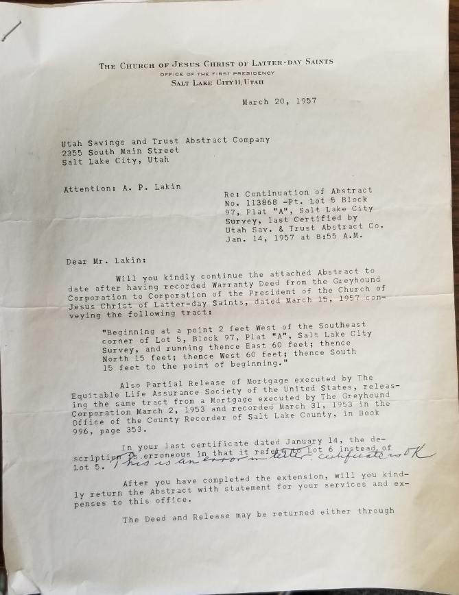1957 ~ Letter Signed by David O. McKay, Stephen L. Richards, and J. Reuben Clark ~ [The First Presidency]