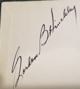 This book has Gordon B. Hinckley engraved at the bottom of the spine, and inside you find his signature, and its an early one; clearly different from when he was older and his signature was more slender.