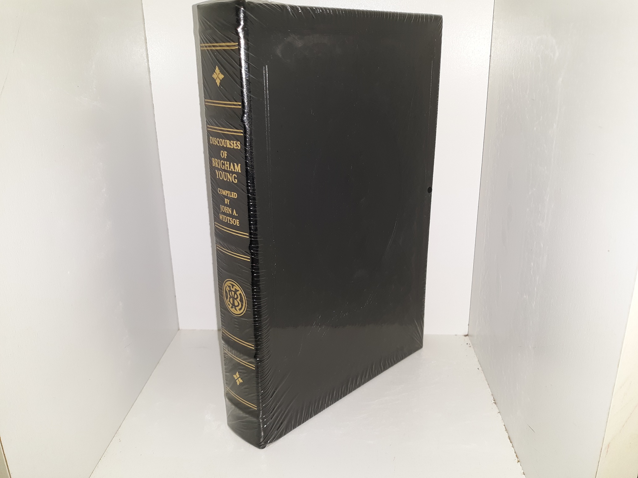 Brand new, black, leather-bound book kept within its original, unopened plastic wrap. The book appears to be in pristine condition.