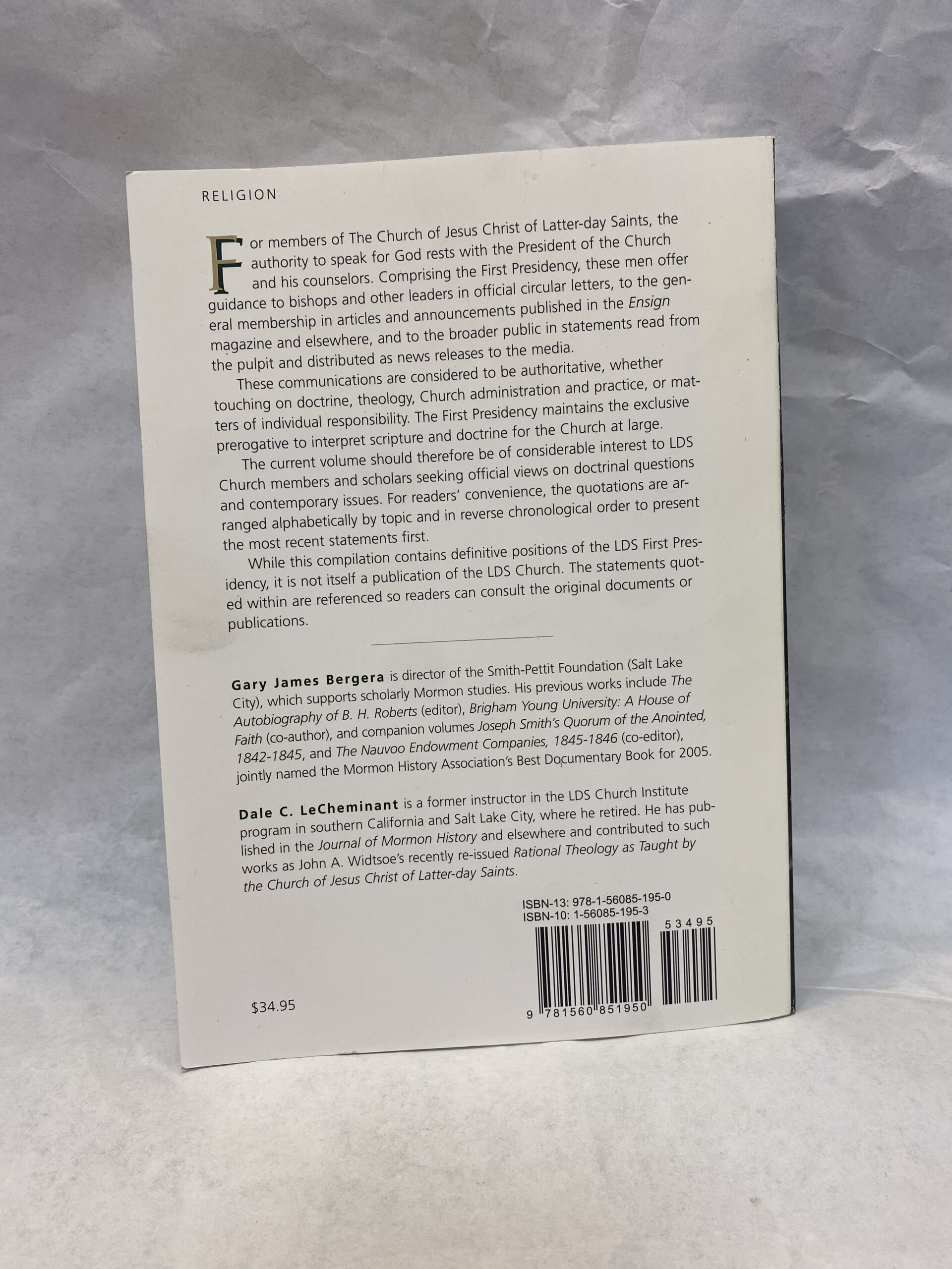 Statements of the LDS First Presidency, A Topical Compendium compiled by Gary James Bergera. Paperback, 2007.