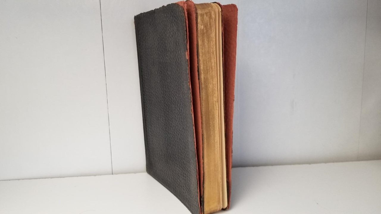 The text block is quite nice and clean throughout; but the boards are splitting (we’ve put in a photograph to show that.)
