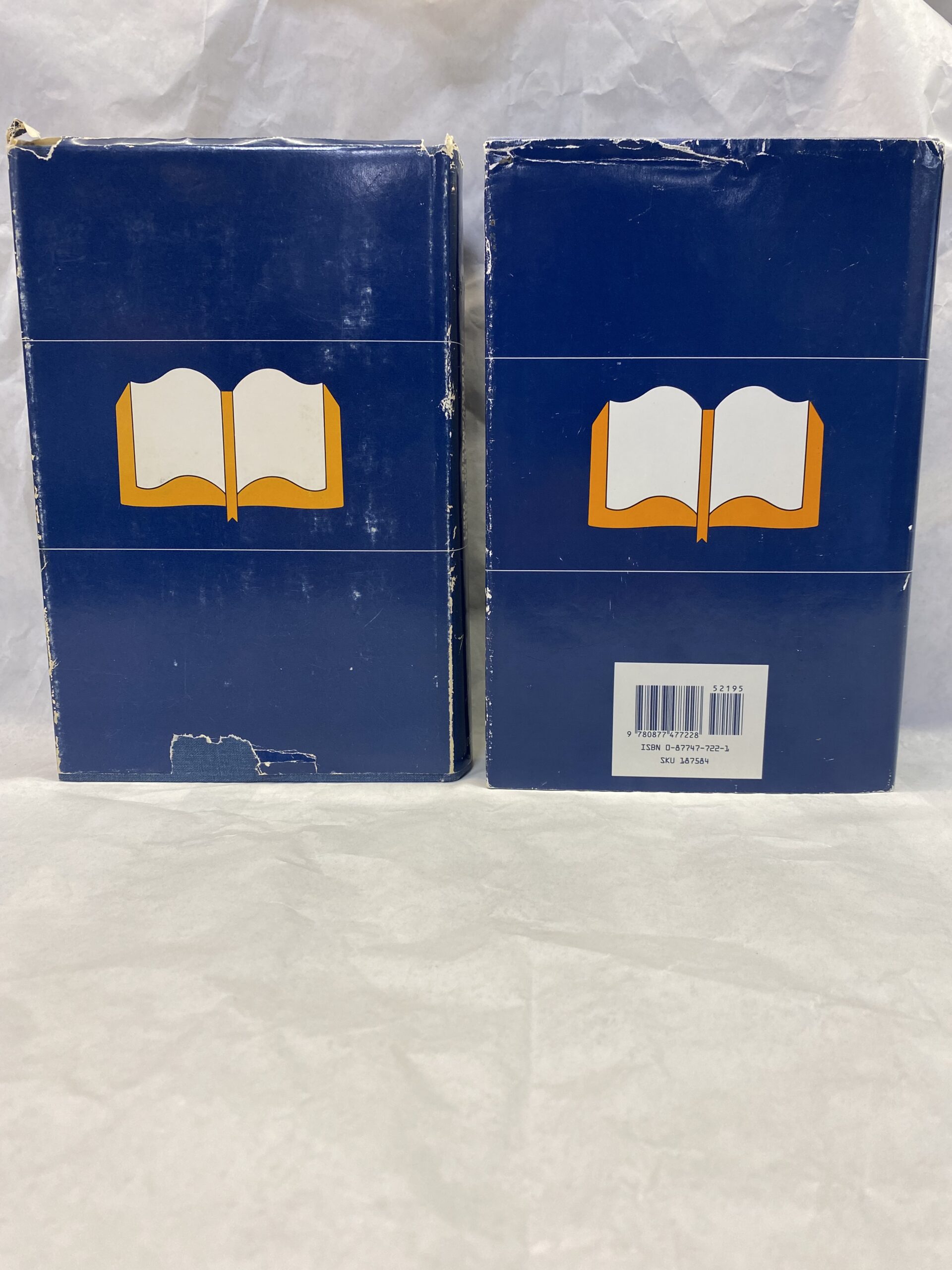 Acceptable condition. The dust jacket has many tears, stains, scratches, markings, and scuffs. Volume 2 has a few pages highlighted, but the rest of the pages in both volumes are clean and unmarked. The edges of the pages have markings, scratches, and scuffs due to shelf wear.