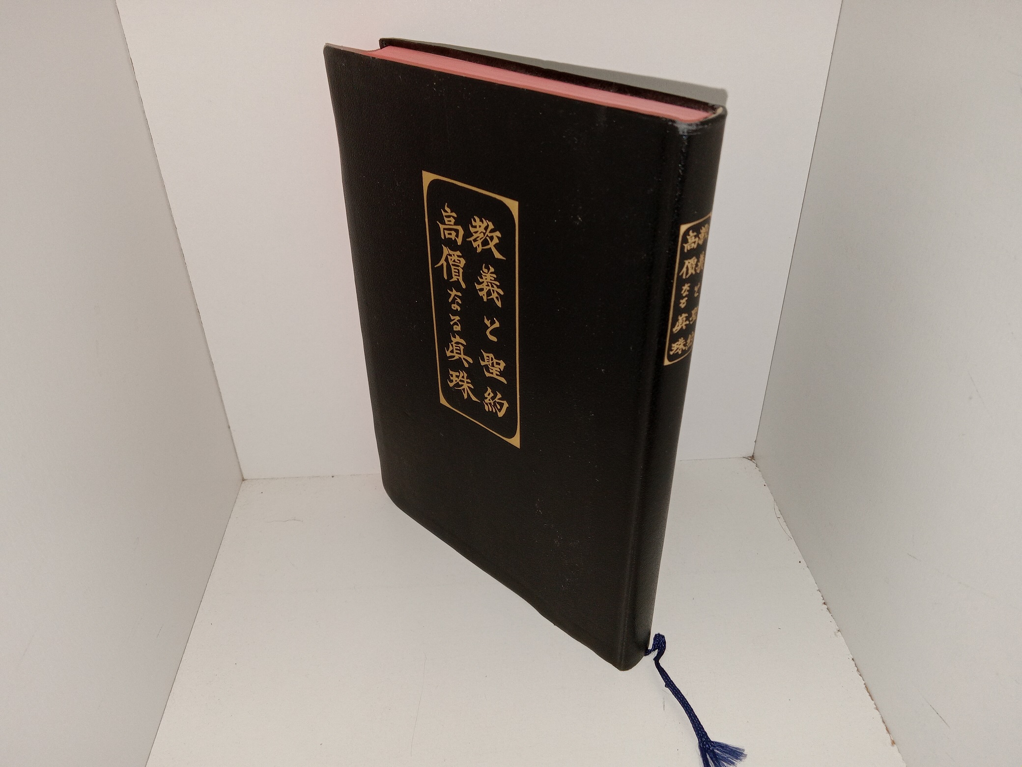 Good condition, black vinyl book. The cover has minor scuffing. The ribbon bookmark has some fraying at the end. The front inside cover has writing in marker. The back flyleaf has writing in pencil. Text throughout is clean, clear, and legible.