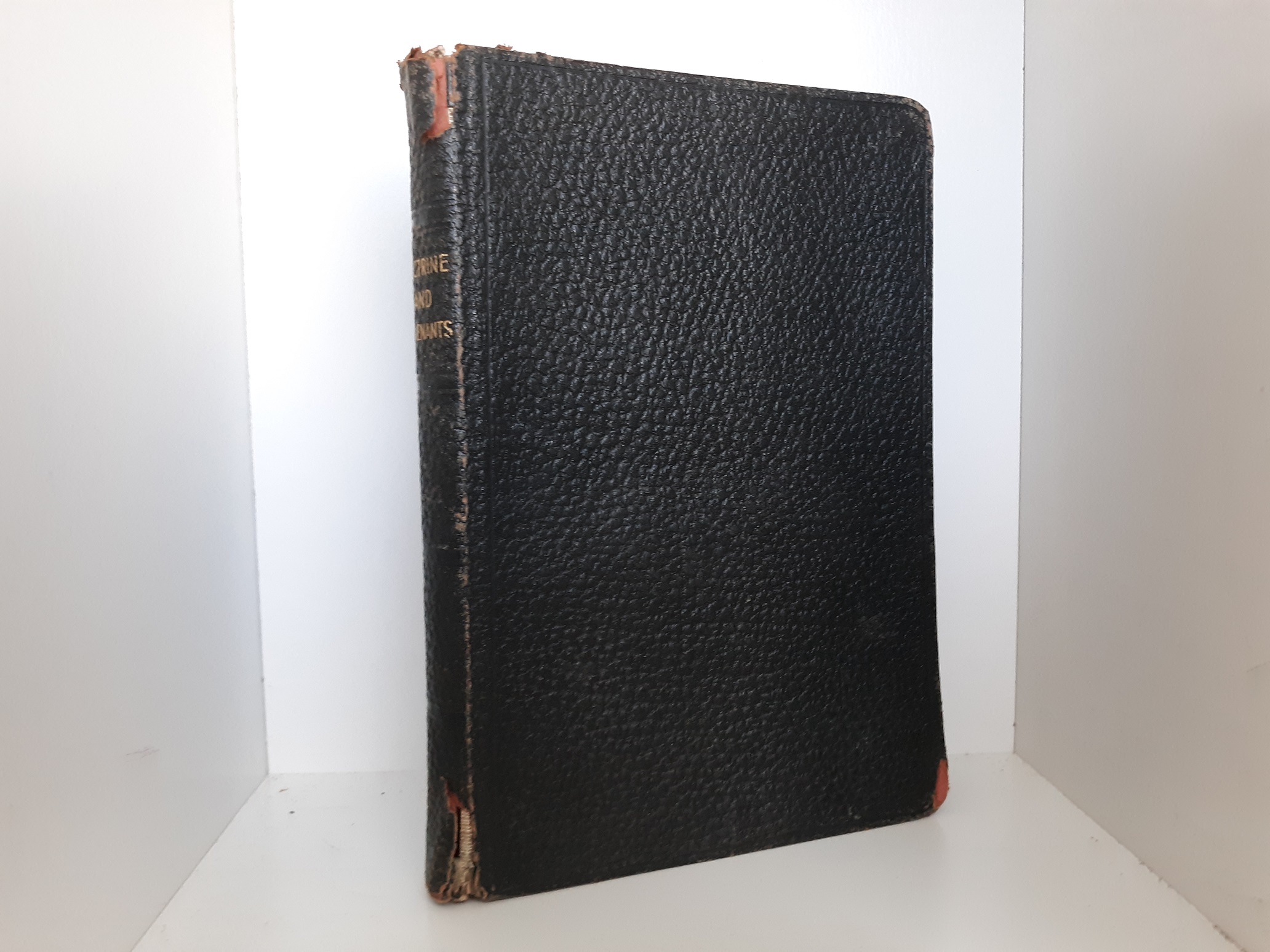 Fair condition, black, leather-bound book. The cover has some pieces torn off (mostly on the spine), scuffs, fading, and some fraying. The flyleaves have writing in pen, pencil, and stains. Some pages have marks in pen………………………..v702 Case D5