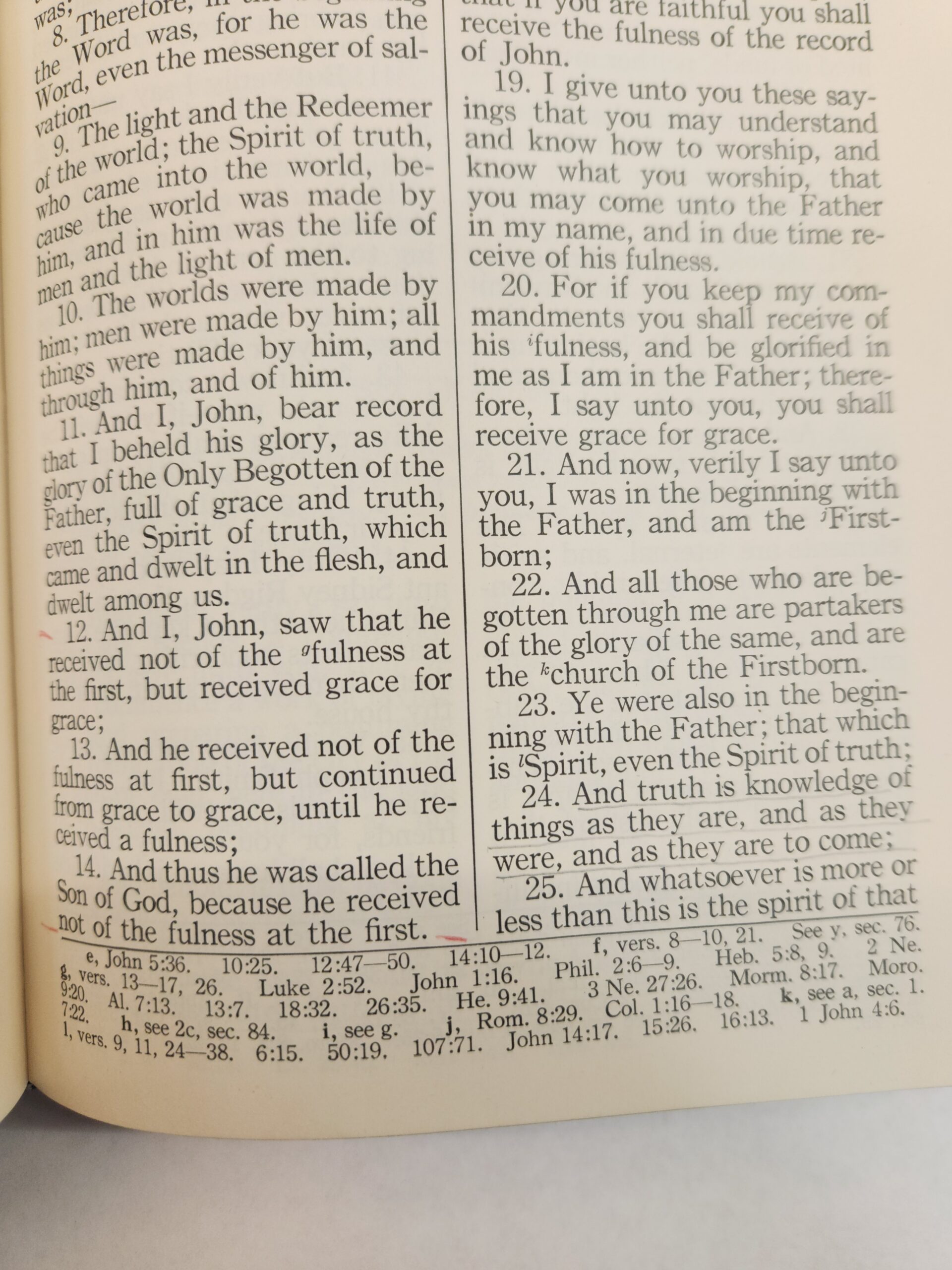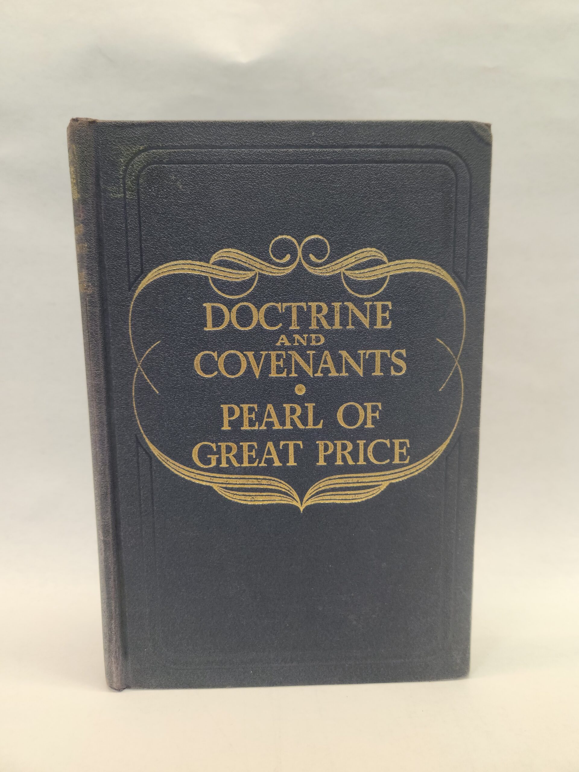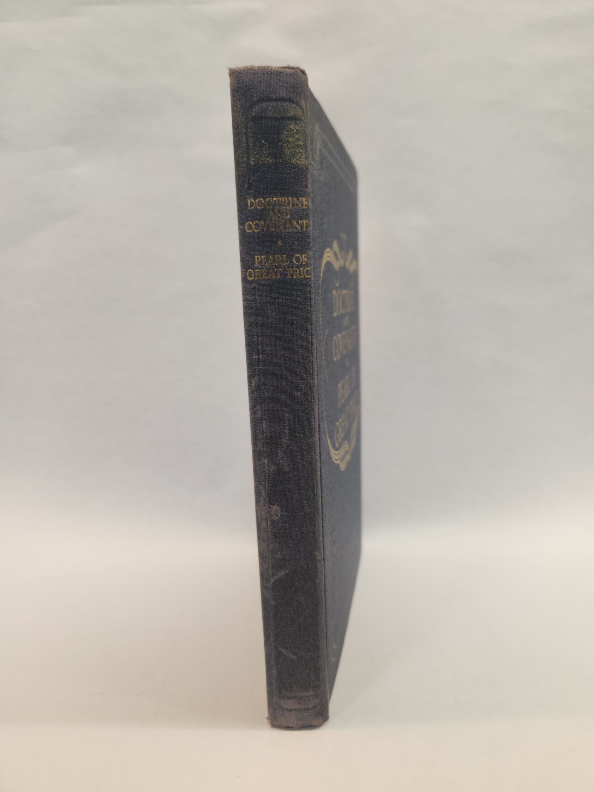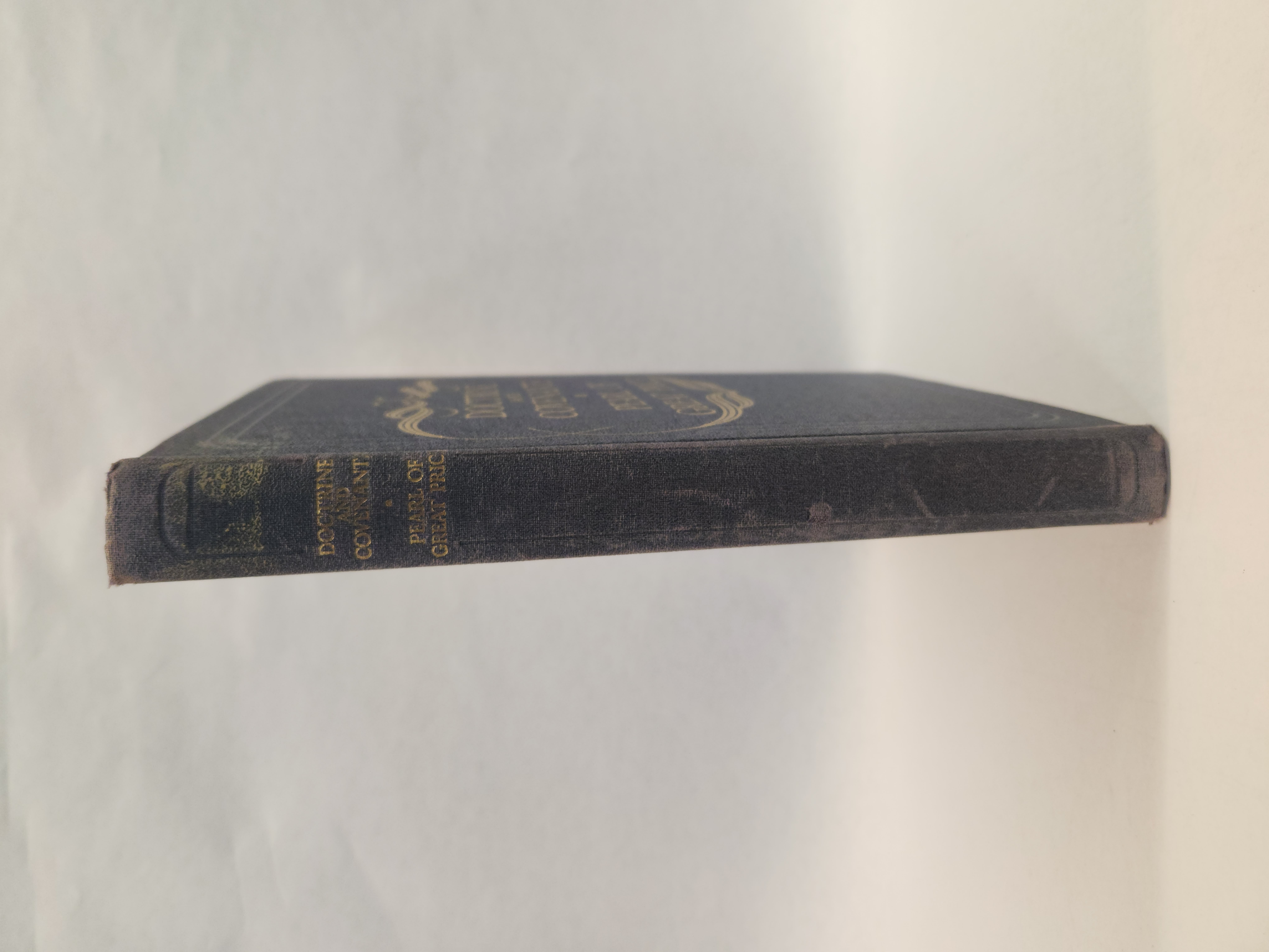 Doctrine and Covenants:: Pearl of Great Price (1950, Hardcover) There are some marks throughout the book and under linings (see picture in gallery). Binding is good. Corners and edges show moderate shelf wear with bend marks, scuffs, fading, and small tear. There is a tear on mid bottom part of spine. Cover, front and back, has some smudge and scratch marks.