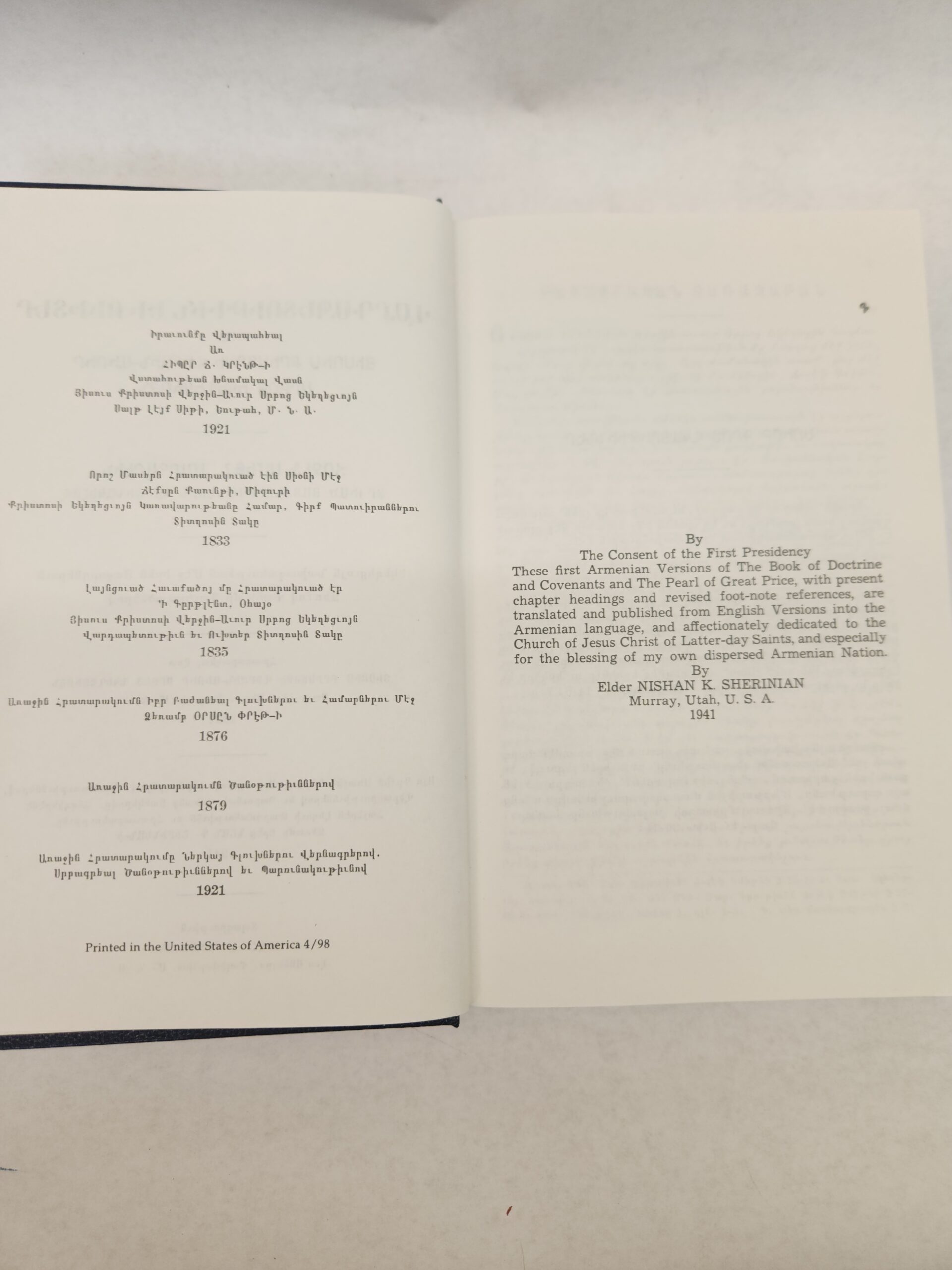 Doctrine and Covenants:: Pearl of Great Price (Armenian, April 1998, Hardcover) No writing or marks on pages. Corners and edges show little shelf wear. Binding is good. Back cover has some smudge marks.