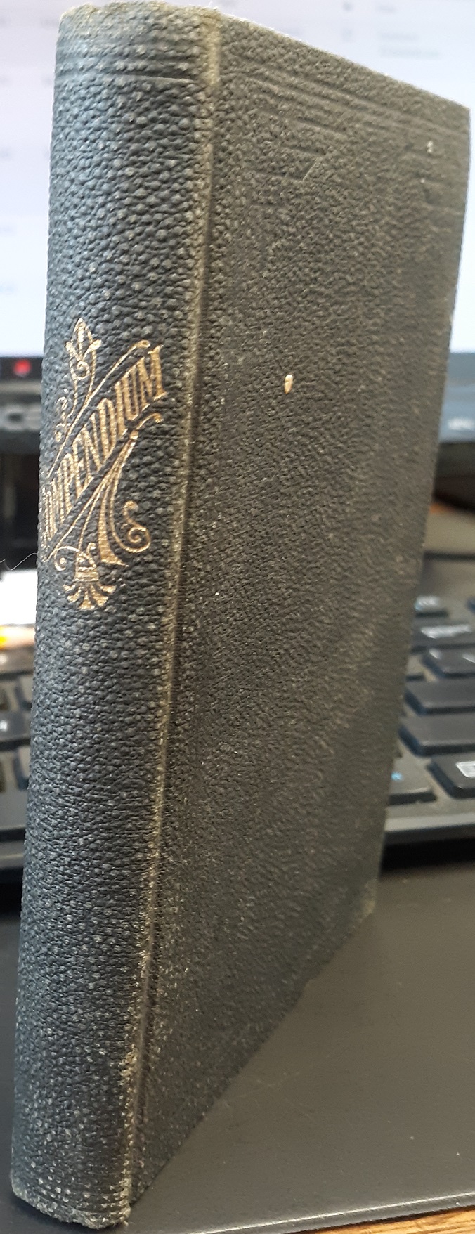 Fair condition, tiny, black hardcover with no dust jacket. The cover has scuff marks, scratches, and some minor stains. The internal binding is a little loose. The inside cover has some black ink marks. One page has some pencil marks, and some others have minor stains………………………………..v1 Bx259